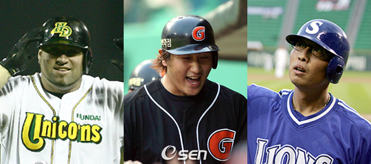 싱겁게 끝날 것 같았던 홈런왕 전쟁이 시즌 막판 들어 다시 뜨거워지고 있다. 홈런왕 경쟁은 2연패를 노리는 롯데 이대호(25), 한국무대 복귀와 첫 홈런왕에 도전하는 현대 브룸바(33), 역시 첫 홈런왕 꿈을 꾸고 있는 삼성 심정수(31)의 3파전으로 좁혀졌다. 지난 9일에는 대포들의 빅뱅이 펼쳐졌다. 롯데 이대호가 사직구장에서 두산을 상대로 시즌 26호 홈런을 뿜어냈다. 최근 3경기 연속 아치를 그려 팀의 4강 탈락에 낙심한 롯데 팬들의 눈길을 다시 끌어 모으고 있다. 비슷한 시각 현대의 외국인 타자 클리프 브룸바는 대전구장에서 한화 투수들을 맞아 2개의 홈런을 쏘아올려 시즌 26호, 27호를 잇따라 기록했다. 롯데 이대호와 삼성 심정수를 한 개 차로 따돌리고 이 부문 단독 선두를 치고 나갔다. 또 한 명의 경쟁자 삼성 심정수는 침묵을 지켰다. 이들 삼총사는 시즌 막판까지 뜨거운 홈런왕 경쟁을 벌일 것으로 보인다. 누가 유리하거나 불리한 것도 아니다. 오로지 컨디션에 따라서 홈런포가 가동된다. 치열한 경쟁 덕택에 30홈런 가능성도 높아진 것만은 분명하다. 브룸바는 8월 들어 2홈런으로 주춤했다. 이날 홈런 두 방도 8경기 만에 나온 것이었다. 시즌 중반 몰아치기에 능한 타자이기 때문에 향후 대포 행진이 이어질 수도 있다. 팀 성적에 구애받지 않아 편하게 방망이를 돌릴 수 있다. 이대호는 롯데의 유일한 희망이다. 지난해에 이어 2년 연속 홈런왕 타이틀에 강한 의욕을 보이고 있다. 8월들어 침묵을 지키다 30일 LG 잠실경기에서 23호 홈런을 쏘아올리더니 9월에는 최근 3경기 연속 대포행진을 벌이고 있다. 잠시 주춤했지만 타격 컨디션이 최고조에 올라있는 만큼 2연패 가능성도 충분하다. 심정수는 요즘 주춤하다. 8월에 4홈런을 쳤고 9월에 1홈런을 기록했다. 최근 12경기에서 1홈런에 그치고 있다. 최근 2경기에서 안타를 터트리지 못해 슬럼프 기미를 보이고 있다. 팀은 2위 두산에 반 게임 차로 접근했기 때문에 심정수의 한 방이 절대적으로 필요하다. 올해로 13년째를 맞는 심정수는 아직 홈런왕 경험이 없다. 이대호 브룸바를 꺾고 첫 홈런왕이 될지 주목받고 있다. sunny@osen.co.kr 브룸바-이대호-심정수.