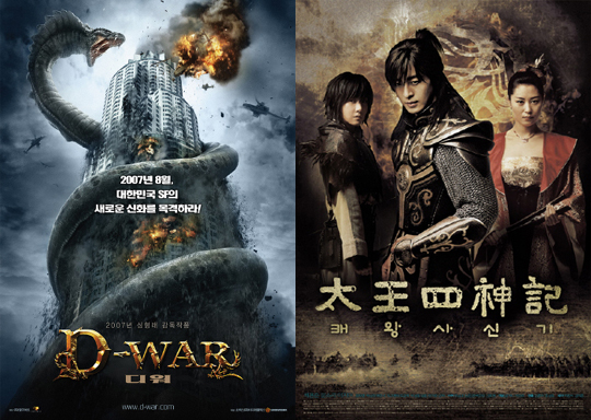 지난 8월 1일 개봉한 ‘디 워’는 많은 논란 속에서 흥행돌풍을 일으키며 한국영화 부활에 활력을 불어넣었다. 11일 첫 방송되는 MBC 드라마 ‘태왕사신기’도 여러 면에서 ‘디 워’와 닮은 점들이 발견되고 있다. 결과까지 점칠 상황은 아니지만 지금까지의 과정에서 막연히 '닮았다'고 한 점들을 조목조목 짚어 보자. 막대한 제작비가 투입된 대작 ‘디 워’와 ‘태왕사신기’의 첫 번째 공통점은 막대한 제작비가 투입됐다는 점이다. ‘디 워’의 제작비는 정확하게 드러나지는 않았지만 300억 원 정도가 투입됐다는 게 정설로 받아들여지고 있다. ‘태왕사신기’의 제작비는 드라마 사상 최대인 430억 원이다. ‘디 워’는 제작비의 상당부분을 CG에 투입했고, ‘태왕사신기’는 배용준 문소리 최민수 박상원 오광록 윤태영 등 초호화 캐스팅과 CG에 많은 공을 들였다. ‘디 워’와 ‘태왕사신기’는 양치기 소년? ‘디 워’와 ‘태왕사신기’는 개봉일과 방영일이 계속 미뤄진 점도 닮았다. ‘디 워’는 지난해부터 개봉 시기가 초미의 관심사였다. 올 초까지 개봉일이 계속 미뤄졌던 ‘디 워’는 할리우드 개봉을 확정하고 국내에서 먼저 공개됐다. ‘태왕사신기’의 행보도 이와 크게 다르지 않았다. 제작 소식이 전해진 후 방송 시기에 많은 관심이 쏠렸지만 차일피일 미뤄졌고, 심지어 김종학 PD는 기자회견을 열어 제작에 큰 문제가 없고 반드시 방송된다고 공개적으로 자신하기까지 했다. 자꾸 방송일이 미뤄진 ‘태왕사신기’는 곡절 끝에 10일 스페셜 방송을 시작으로 시청자들에게 그 실루엣을 선보이게 됐다. ‘꼭꼭 숨겨라’, 신비주의 전략 ‘디 워’와 ‘태왕사신기’의 세 번째 공통점은 신비주의 전략이다. 두 작품 모두 제작은 되고 있었지만 언론에 거의 노출되지 않았다. 관심이 높은 만큼 언론의 취재열기가 높았지만 제작진은 묵묵부답으로 일관해 ‘정말 제작이 되고 있는 게 맞나?’ 싶을 만큼 철저하게 베일에 가려져 있었다. ‘디 워’의 경우엔 CG가 엉망이라는 억측이 나돌았고, ‘태왕사신기’ 또한 이와 크게 다르지 않았다. 개봉일과 방영일에 맞닥뜨려서야 조금씩 그 모습을 드러내는 신비주의 전략으로 언론은 물론 관객과 시청자들의 궁금증과 호기심을 한껏 자극했다. ‘최대의 관건은 CG!’ CG에 사활을 걸고 있다는 게 ‘디 워’와 ‘태왕사신기’의 네 번째 공통점이다. ‘디 워’가 개봉 전부터 화제를 불러일으킨 주된 요인은 바로 CG였다. 그리고 ‘디 워’의 CG는 다소 빈약해보이는 스토리의 약점을 커버하며 흥행돌풍을 일으켰다. ‘태왕사신기’도 한류스타 배용준을 비롯한 배우들에 대한 관심이 높지만 그 보다 더 시선을 끄는 것은 역시 CG다. 특히 기존의 ‘퓨전사극’이라는 장르를 넘어 ‘판타지 사극’을 표방한 만큼 시청자들의 관심도 역시 CG에 쏠릴 수밖에 없는 상황이다. 최근 공개된 영상에서 몽환적이고 환상적인 자태를 드러낸 ‘태왕사신기’의 CG가 시청률 견인에 얼마나 공을 세울지 기대감을 갖게 한다. 국내를 넘어 세계시장을 꿈꾸다 ‘디 워’와 ‘태왕사신기’의 마지막 공통점은 바로 국내 뿐 아니라 해외 시장을 겨냥한 작품이라는 점이다. ‘디 워’는 ‘용가리’를 통해 자신감을 얻은 심형래 감독이 더 나은 CG로 무장한 작품을 가지고 미국시장을 공략하겠다는 의도가 들어간 영화다. 그 결과 ‘디 워’는 오는 14일 미국에서 2000개 이상의 개봉관을 확보해 한국영화 최초 대규모 개봉이라는 꿈을 현실로 이뤘다. ‘태왕사신기’ 또한 전면에 드러나진 않았지만 해외 시장을 염두에 두고 있다는 것이 일반적인 관측이다. 일본 내 한류 최고의 스타 배용준을 비롯해 수많은 톱연기자들이 가세했을 뿐만 아니라 막대한 제작비를 충당하기 위해서는 응당 해외 수출을 고려하고 있다는 분석이다. ‘태왕사신기’, ‘디 워’ 흥행돌풍 닮을까? ‘디 워’와 ‘태왕사신기’는 이처럼 많은 부분이 닮아 있다. ‘디 워’는 개봉 직후부터 폭발적인 흥행세를 보이며 800만 관객을 돌파해 역대 흥행 순위 5위에 올라섰다. 10일 스페셜 방송을 시작으로 본격적인 방송을 앞둔 ‘태왕사신기’가 ‘디 워’의 흥행을 닮아 시청률 고공행진을 할 수 있을지는 미지수지만 그 가능성은 높다. 특히 ‘디 워’가 한 주 앞서 개봉한 ‘화려한 휴가’와 더불어 쌍끌이 흥행몰이를 했던 것처럼 먼저 시작한 SBS 드라마 ‘왕과 나’와 함께 안방극장을 장악할 수 있을지도 기대된다. pharos@osen.co.kr