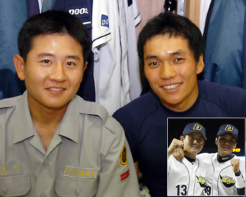 두산 베어스가 16일 잠실 한화전에 앞서 '유소년 야구선수 지원 사랑의 성금' 전달 행사를 실시한다. 두산 구단은 '이번 행사는 손시헌과 이종욱의 후원회인 '시종회'와 함께 실시하는 것으로, '시종회'는 올 시즌 이종욱의 안타 및 도루 1개당 5만 원씩을 모금, 총 1000만 원의 성금을 적립했다. 그리고 이 성금은 한국야구위원회(KBO) 육성위원회에서 추천한 초등학교 야구선수 10명에게 야구장학금으로 각각 100만 원씩 전달된다'라고 설명했다. 16일 행사에는 현재 상무 소속인 손시헌과 이종욱이 참석, 직접 장학금을 전달할 예정이다. 또한 손시헌과 이종욱은 행사에 앞서 기념 사인회를 통해 팬들과 만나게 되며, 특히 군복무 중인 손시헌은 전광판 영상을 통해 팬들에게 인사말을 전한다. 한편 이번 행사를 기념하기 위해 '시종회' 회원이자 텔런트인 정보석 씨가 시구를 하며 장학금 수여 대표인 김성원 군(도곡초, 5년)이 시타를 맡게 된다. 두산과 '시종회'는 이번 행사를 계기로 내년 시즌엔 더욱 많은 초등학교 야구선수들에게 유소년 야구 장학금을 전달할 예정이다. sgoi@osen.co.kr 손시헌-이종욱=두산 베어스 제공.