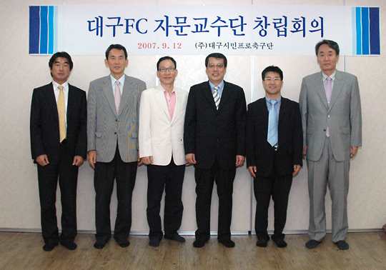 대구FC는 지난 12일 구단과 대학간의 산학협력활동을 통한 상호발전을 위해 대학 스포츠관련학과 교수들로 구성된 대구FC 자문교수단을 발족하고 창립회의를 가졌다. 제1기 자문교수단으로는 강현민 고려대 교수, 임수원 경북대 교수, 김기진 계명대 교수, 권욱동 대구대 교수, 김동규 영남대 교수(대학 가나다순)로 구성됐다. 이날 최종준 대표이사는 자문교수들에게 위촉장을 수여하고 자문교수단의 발전적인 운영과 생산적인 활동을 위한 다양한 의견을 나눴다. 앞으로 대구는 자문교수단의 학문적 지식과 이론을 현장과 접목해 대구의 발전을 위한 초석을 마련할 예정이다. what@osen.co.kr 대구 FC 제공.
