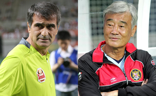 '귀네슈 vs 김호, 첫 대결서 누가 이길까?'. 오는 주말 펼쳐지는 K리그 21라운드에서 의미있는 대결이 펼쳐진다. 바로 터키 출신의 세뇰 귀네슈 감독과 K리그의 명장 김호 감독이 15일 첫 맞대결을 가진다. 귀네슈 감독은 터키에서 날아온 명장으로 2002 월드컵 4강을 이끌었고 UEFA 올해의 감독상을 받기도 했던 인물. 올 시즌 K리그에 처음으로 부임해 초반 돌풍을 일으켰으나 주전 선수들의 대거 부상으로 인해 현재는 리그 8위로 쳐져있다. 김호 감독은 K리그의 알렉스 퍼거슨과 같은 존재다. 한일은행 감독 시절부터 지도력을 인정받은 그는 94 미국 월드컵 때 대표팀을 이끌고 가능성 있는 모습을 보여주었다. 김호 감독은 수원을 맡아 재미있는 축구를 보여줌과 동시에 많은 우승컵을 차지하며 수원을 신흥 강호로 끌어올렸다. 지난 여름 김호 감독은 침체된 대전에 부임해 확 달라진 모습으로 신바람을 내고 있다. 이같은 양 감독의 화려한 이력말고도 양 팀은 현재 상황에서 꼭 상대를 꺾어야만 한다. 서울은 현재 승점 26점을 확보한 상태. 목표로 하는 6강 플레이오프에 진출하기 위해서는 이번 대전과의 맞대결에서 꼭 승리해야만 한다. 대전 역시 서울과 비슷한 처지다. 대전은 현재 22점으로 10위를 마크하고 있다. 따라서 대전 역시 6강행을 위해서라면 서울전에서 꼭 승리를 거두어야 한다. bbadagun@osen.co.kr