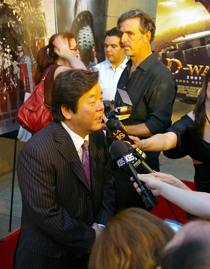 14일 미국에서 개봉하는 ‘디 워’(심형래 감독, 영구아트 제작)가 개봉 하루 전 시사회를 성황리에 마쳤다. 쇼박스(주)미디어플렉스에 따르면 ‘디 워’는 현지시간으로 13일 오후 7시 30분 미국 LA 할리우드에 위치한 이집션 극장에서 100여명의 취재진이 모인 가운데 공개됐다. 이날 시사회에는 심형래 감독을 비롯해 미국 배급사인 프리스타일의 마크 보디와 수잔 잭슨 공동대표, 제이슨 베어, 아만다 브룩스, 로버트 포스터 등 주요 출연진이 참석했다. 한편 이날 프리미어에 참석한 마크 보디 대표는 ‘디 워’의 미국 내 개봉관이 최종적으로 2267개로 확정됐다고 밝혔다. ‘디 워’는 한국영화 최초로 미국 전역에 와이드 릴리즈 돼 관심이 증폭되고 있는 가운데 예고편 인기 순위 1위에 오르는 등 흥행에 청신호가 켜졌다. pharos@osen.co.kr 영화 ‘디 워’의 미국 개봉을 앞두고 미국 LA 이집션 극장에서 인터뷰를 하고 있는 심형래 감독./쇼박스(주)미디어플렉스 제공.