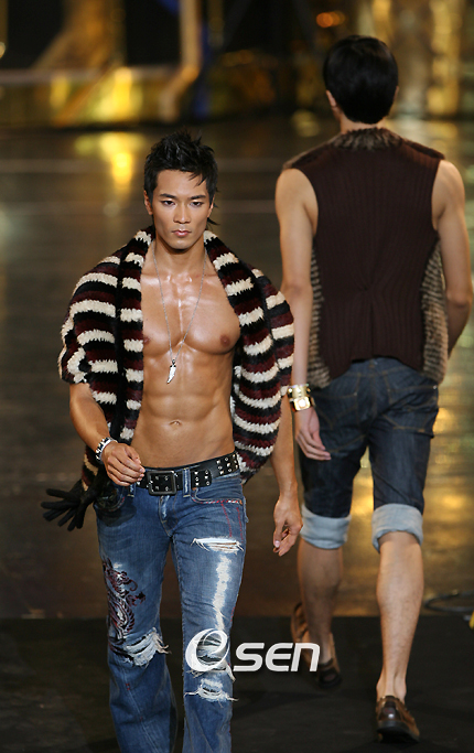 2007 엘리트 모델 선발대회' 한국 본선이 14일 오후 서울 광장동 워커힐호텔 가야금홀에서 막을 올렸다. 1971년 프랑스 파리에서 시작된 이 대회는 해마다 전세계 60여 개국에서 수많은 모델들이 참가하는 미의 경연장으로 이번 한국 본선 선출자들은 10월 아시아 태평양 지역대회에 대표로 참가하게 된다. 한 남성 모델이 단단한 근육질의 상체를 그대로 드러내는 패션으로 워킹을 하고 있다./김영민 기자ajyoung@osen.co.kr