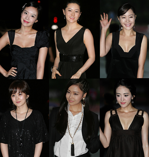 레드카펫 위는 온통 새까맣게 물들었다. 15일 저녁 경기도 이천시 엑스포 특설무대에서 열린 제 15회 춘사대상 영화제 풍경이다. 장동건 등 남자 스타들은 대개 그렇듯 검정 턱시도를 입고 나타났지만 저마다의 레드카펫 패션을 중요시하는 여자 스타들도 하나같이 검정색 드레스 차림으로 등장, 눈길을 끌었다. 올 가을 유행 컬러인 블랙을 그대로 레드카펫 위에 반영한 셈이다. 장동건과 함께 특별상인 한류문화대상 시상자로 나선 이영애는 앞 가슴이 V자로 깊게 파인 민소매 블랙 드레스를 선보였다. 오랜만에 공식석상에 얼굴을 내민 그녀는 변치않는 미모와 우아한 미소로 관객들로부터 환호를 들었다. 한류문화대상을 수상한 장나라도 블랙 드레스이기는 마찬가지. 팔꿈치까지 내려오는 점잖은 드레스에 같은 색조의 목걸이로 액센트를 줬다. '미녀는 괴로워'의 김아중은 대종상에 이어 춘사영화제 여우주연상도 휩쓸며 기염을 토했다. 그녀의 패션 코드도 역시 블랙. 깜찍한 스타일의 언밸런스드 블랙 드레스 차림으로 자신의 올해 두번째 여우상 트로피를 가슴에 안았다. 이밖에 여우조연상 수상자인 엄지원과 이세은 홍지현 유인영 등 대다수 영화제 참가 톱스타들의 의상은 마치 사전 합의라도 한듯 검정색으로 통일됐다. mcgwire@osen.co.kr 황세준 기자