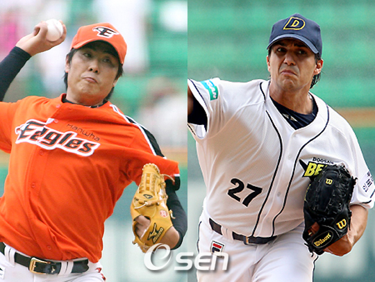 그야말로 대격돌이다. 다니엘 리오스(두산)와 정민철(한화)이 15일 잠실벌에서 뜨거운 한 판 승부를 펼친다. 18승 5패(방어율 1.92)를 거둔 리오스는 최근 구위가 아주 좋다. 지난달 15일 잠실 KIA전에 선발 출격해 7이닝 3피안타(1피홈런) 1탈삼진 1실점으로 승리를 따낸 뒤 4연승을 내달렸다. 지난 5경기서 4승 무패에 방어율 2.48. 어느 누구든 만나도 승리를 자신할 만큼 두려울 것이 없다. 한화전에 세 차례 선발 등판해 3승 1패(43이닝 36피안타 3피홈런 19 4사구 24탈삼진 9자책점)에 방어율 1.88을 거뒀다. 우천 취소로 체력을 비축해놓은 것도 장점. 4번 김동주가 리오스의 승리를 위해 매서운 방망이를 돌릴 태세. 시즌 타율 3할3푼6리 117안타 19홈런 75타점 65득점으로 최고의 활약을 펼치는 김동주는 아낌없은 화력 지원을 약속했다. 더욱이 최근 타격감은 타의추종을 거부할 정도. 지난 5경기서 5할3푼3리(15타수 8안타) 1홈런 4타점 5득점으로 상대 투수들의 간담을 서늘하게 만든다. 올 시즌 부활에 성공해 4년 만에 10승 고지에 오른 정민철도 각오가 남다르다. 현재 삼성과 승차없이 4위를 기록한 상황에서 자신의 활약 여부에 따라 삼성을 제치고 3위로 오를 수 있기 때문. 어느 때보다 더욱 중요한 만큼 노련미로 두산 타자를 제압할 태세이다. 두산전에 네 차례 등판해 3승 1패를 거뒀지만 4.76의 방어율이 만족스러운 편은 아니다. 지난 5경기서도 2승 1패(방어율 3.58)로 무난한 피칭을 선보였다. 한화는 크루즈-김태균의 거포 듀오가 하루 빨리 살아나기만을 애타게 기다리고 있다. 중요한 시점에서 이들의 방망이가 제 몫을 해내지 못하면 크나큰 전력 손실. 두 선수는 최근 5경기서 약속이나 한 듯 타율 2할3푼5리로 부진을 면치 못하고 있다. what@osen.co.kr 리오스-정민철.
