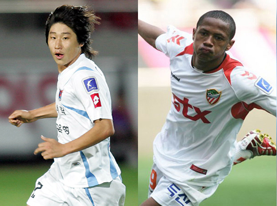 대구 FC와 경남 FC. 비슷한 형편에 어려운 살림을 꾸려가는 두 팀이 한판 붙는다. 여기서 한 가지 주목할 점이 있다. 바로 양 팀의 간판이라 자부하는 골잡이들의 정면 승부다. '시민구단의 지존'자리를 놓고 대구와 경남이 오는 16일 오후 3시 30분 대구 월드컵경기장에서 물러설 수 없는 승부를 펼친다. 특히 양팀이 자랑하는 공격수들의 화력 대결에 관심이 모아진다. 홈팀 대구는 이근호에게 모든 희망을 걸었다. 이미 6강 플레이오프 진출은 어려운 상황. 그러나 자존심을 위해서라도 앞으로 남은 6경기 중 절반 이상은 쓸어담겠다는 각오다. 박성화 감독이 이끄는 올림픽대표팀에서 '희망'으로 떠오른 이근호는 측면 공격수로 주로 활동하지만 워낙 인적 자원이 부족한 소속팀에선 최전방 포지션을 책임지곤 했다. 특히 이근호는 이날 경기에 경고 누적으로 나설 수 없는 루이지뉴의 공백을 메워야 하는 대단히 막중한 임무를 감당해야 한다. 역대 전적에서 1승3패로 밀리고 있어 이근호의 역할은 더욱 클 수 밖에 없다. 지난 2주간 이근호가 올림픽대표팀 일원으로 중동 원정을 포함해 숨가쁜 일정을 보냈음에도 선발 엔트리에 오른 이유는 그만큼 승점 3점이 변병주 감독에게 절실한 까닭이다. 최근 4연승을 내달려 어느새 K리그 4위에 랭크돼 있는 원정팀 경남은 역시 전문 골게터 까보레를 선봉으로 내세울 예정이다. 연승 기간은 물론 그 이전부터 까보레의 돌풍은 K리그를 강타했다. 5경기를 치르는 동안 까보레는 3골-3도움을 올렸고, 시즌 전체를 통틀어 13골-6도움을 기록했다. 이는 득점랭킹 선두이자 도움 부문 3위다. 박항서 감독은 까보레의 발끝에 더욱 힘을 실어주기 위해 부상으로 잠시 제 컨디션을 찾지 못했던 뽀뽀를 공격 파트너로 투입한다. 대구전 승리 여부에 따라 남은 5경기를 여유있게 풀어가느냐, 아니면 막바지까지 마음을 졸이며 보내야하느냐가 결정되기 때문에 경남으로선 강한 공격을 퍼부을 수 밖에 없다. 각기 다른 입장속에 저마다 승리를 다짐하는 대구와 경남. 토종과 용병의 대결로도 살필 수 있는 이근호와 까보레의 화력전 승자가 바로 열쇠를 쥐고 있다. yoshike3@osen.co.kr