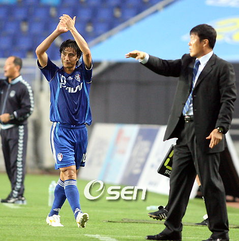 '반지의 제왕' 안정환(수원, 31)이 팬들의 큰 사랑에 꼭 보답하겠다고 다짐했다. 안정환은 15일 수원 월드컵 경기장에서 열린 광주와의 21라운드에서 선발 출전해 80분을 소화했다. 경기 시작전 수원 지지자연대인 '그랑블루'로부터 선수 개인 카드섹션이라는 큰 선물을 받은 안정환은 아쉽게도 이날 공격포인트를 기록하지 못했다. 경기가 끝난 후 기자들과 짧은 인터뷰를 가진 안정환은 "팬들에게 감사드린다" 며 말문을 열었다. 그는 "많이 찾아오시고 큰 사랑을 보여주셨는데 좋은 결과를 얻지 못해 아쉽다" 고 경기 결과에 대해 아쉬움을 표출했다. 안정환은 골을 기록하지 못한 것에 대해 경기 감각을 언급했다. 그는 "경기를 아직 많이 뛰지 못해서 감각이 떨어져 있다" 며 "이런 점은 보완해야 한다" 고 말했다. 그는 "이런 큰 사랑을 받은 만큼 다음 경기에서 보답할 수 있도록 최선을 다하겠다"고 각오를 밝혔다. bbadagun@osen.co.kr