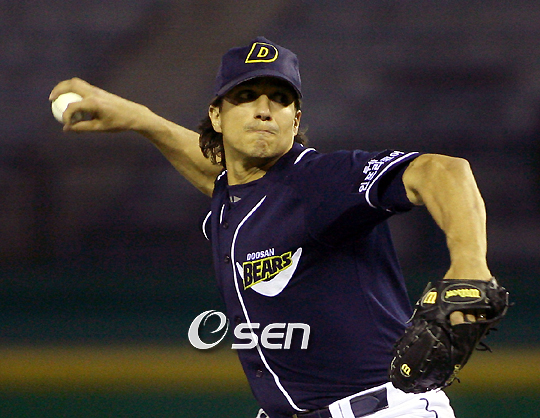 두산 용병 에이스 다니엘 리오스(35)가 한국 프로야구서 8년 만에 나온 시즌 20승 투수가 됐다. 리오스는 20일 수원구장에서 열린 현대와의 경기에서 7이닝 2실점으로 호투, 팀의 4-2 승리를 이끌었다. 두산은 리오스의 호투 덕분에 최근 3연승으로 2위 수성의 유리한 위치를 점했다. 이날 SK에 패한 3위 삼성에 2.5게임차로 앞섰다. 다승과 방어율 부문 1위를 독주하고 있는 최고 용병 투수 리오스는 이날 승리로 20승 6패에 방어율 1.96을 마크하면서 각종 진기록을 쏟아냈다. 최근 6연승과 함께 1999년 현대 정민태 이후 8년만에 20승 고지를 밟아 21세기 첫 20승 투수이자 통산 15번째로 ‘20승 클럽’에 가입했다. 또 선발 20승은 1995년 이상훈(LG) 이후 12년만에 통산 6번째였고 외국인 투수 시즌 최다승 신기록도 함께 수립했다. 이전 외국인 선수 최다승은 2002년 키퍼(KIA)의 19승이었다. 이날 리오스의 20승 도우미는 발빠른 타자 고영민이었다. 2-2로 맞선 8회초 공격서 선두타자로 나와 몸에 맞는 볼로 출루한 고영민은 다음타자 김동주 타석때 2루와 3루를 연거푸 훔쳐 무사 3루 찬스를 만들었다. 이어 김동주의 볼넷으로 만든 무사 1, 3루에서 후속 최준석의 유격수 땅볼 병살타 때 홈인, 귀중한 결승점을 올렸다. 안타 한 개 없이 고영민의 빠른 발이 만든 결승점이었다. 리오스의 20승 전선은 초반에는 순조로웠으나 중반 현대의 거센 추격에 말려 고전했다. 두산은 1회초 현대 선발 김수경이 컨트롤이 흔들리는 틈을 타 톱타자 이종욱이 스트레이트 볼넷에 이어 2루 도루에 성공하는 등 안타 없이 선취점을 올렸다. 이어 4회 한 점을 추가, 마운드에서 호투하는 리오스의 20승으로 가는 발걸음을 가볍게 했다. 하지만 현대의 반격도 매서웠다. 0-2로 뒤진 6회말 공격서 김일경과 정성훈의 연속안타로 무사 1, 3루의 찬스를 만든 뒤 브룸바의 유격수 땅볼 병살타 때 3루주자 김일경이 홈인, 한 점을 만회했다. 2사 후 유한준의 내야안타로 불씨를 살린 현대는 후속 황재균과 강병식의 연속안타로 한 점을 추가, 동점을 만들며 승부를 원점으로 돌렸다. 그러나 구원투수 조용훈이 8회 컨트롤이 흔들리고 고영민의 도루 연속 도루로 결승점을 헌납, 무위에 그쳤다. 8회 고영민의 발로 결승점을 뽑은 두산은 9회초에도 전상렬의 2루타와 이종욱의 적시타로 한 점을 보태 승기를 굳혔다. 두산은 리오스에 이어 임태훈-정재훈으로 이어지는 특급 불펜진을 가동, 경기를 매조지했다. 정재훈은 1이닝 무실점으로 시즌 24세이브째를 올렸다. 9회 등판한 정재훈은 볼넷과 안타를 맞고 1사 2, 3루의 위기에서 후속타자들을 외야플라이와 삼진으로 처리, 리오스의 20승을 지켜냈다. 리오스는 7회말 2사 1, 3루의 위기를 맞기도 했으나 무사히 벗어나며 20승의 발판을 마련했다. 최고구속 146km의 빠른 볼과 날카로운 슬라이더, 체인지업, 컷 패스트볼 등 변화구를 구사하며 7이닝 동안 8피안타 2볼넷 1탈삼진 2실점을 기록했다. 삼진보다는 범타를 유도하는 투구를 보여줬다. 현대 선발 김수경은 6이닝 3피안타 5사사구 7탈삼진 2실점으로 비교적 호투했으나 승리와는 인연이 없었다. sun@osen.co.kr 수원=손용호 기자spjj@osen.co.kr