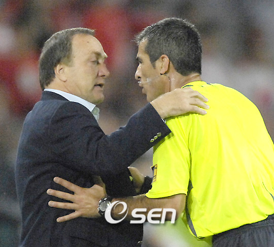 1100만원짜리이지만 물에 닿으면 무용지물이 되고 만다. 지난 22일 전주 월드컵경기장에서 열린 하우젠 K리그 2007 22라운드 전북 현대와 FC 서울의 경기서 올 시즌 들어 처음 도입된 무선 헤드셋의 문제점이 나타났다. 이날 경기 막판 전북의 스테보는 1-1 동점 상황에서 결승골을 터트렸다. 하지만 FC 서울 선수들이 스테보의 핸드볼 파울을 심판에게 어필했고 곧바로 이 득점은 무효가 됐다. 하지만 이때부터 문제가 발생하기 시작했다. 주심은 분명히 골 사인을 내며 중앙선으로 달려갔지만 제1 부심은 이에 부응하지 않고 그 자리에 서 있던 것. 이 순간 주심과 부심의 판정은 모두 옳았다. 볼이 네트를 흔들었으니 골이었고 스테보가 문전에서 손으로 공의 방향을 바꿨으니 핸드볼 파울이었던 것. 하지만 문제는 심판들이 소지하고 있는 무선 헤드셋에서 발생했다. 4개들이 한 세트인 이 무선 헤드셋은 지난 6월 연맹에서 야심차게 도입한 것으로 지난해 독일 월드컵 때 사용된 것과 같은 기종이다. 연맹 관계자는 이 장비가 비가 오는 날이나 땀이 많이 나는 날에는 가끔 작동을 멈추게 된다고 전했다. 그래서 이날 전주 경기장에 내렸던 비 때문에 작동 불능인 상황이 벌어지기 시작했고 중요한 순간에 부심이 주심에게 스테보의 핸드볼 파울을 전하지 못했다. 이 관계자는 "여름에도 가끔 문제가 있었다. 그렇기 때문에 보완을 해야겠지만 지금 상황에서 판정을 내릴 때 가장 중요한 것은 헤드셋을 이용해 주심에게 전달하는 것이고 두 번째 방법은 헤드셋과 연결된 진동장치다. 그래도 안되면 심판을 직접 부르는 수 밖에 없다"고 말했다. 한편 이날 스테보의 핸드볼 파울을 지적한 원창호 제1 부심은 "무선 헤드셋이 되지 않았기 때문에 주심에게 전달할 수 없었다. 그래서 진동을 느낄 수 있도록 노력했지만 그것도 먹통이었다. 민감한 부분이기 때문에 깃발을 들 수 없었다"고 밝혔다. 이어 그는 "가장 중요한 것은 헤드셋이다. 그것이 작동이 되지 않는다면 진동장치를 느낄 수 있도록 준비한다. 전반전이 끝난 후 2명의 부심 것은 교체했지만 내 장비는 바꾸지 않았다. 굉장히 민감한 상황이었기 때문에 자리에 그대로 서 있을 수 밖에 없었다. FC 서울 선수들이 항의했다고 해서 판정을 번복한 것은 아니다"고 전했다. K리그에 도입된 헤드셋은 지난해 월드컵을 통해 그 효용성을 인정받아 잉글랜드 프리미어리그, 프랑스 리그 1 그리고 유럽축구연맹(UEFA) 챔피언스리그 등에서도 사용 중이다. 10bird@osen.co.kr 지난해 독일 월드컵 스위스전서 한국의 딕 아드보카트 감독이 헤드셋을 착용하고 있는 오라시오 엘리손도 주심에게 어필하고 있는 모습.