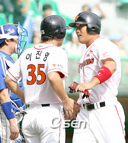 SK 와이번스가 지친 삼성을 제물삼아 페넌트레이스 우승 매직넘버를 ‘2’로 줄였다. SK는 23일 인천 문학구장에서 열린 삼성과의 경기서 선발 로마노의 호투와 4회 집중타를 앞세워 7-2로 역전승을 거뒀다. SK는 문학구장 5연승을 구가하며 한국시리즈 직행 티켓을 눈앞에 뒀다. 반면 삼성은 이날 패배로 최근 3연패의 부진에 빠지며 2위 두산과의 승차가 4.5게임으로 더욱 벌어지며 한화에도 반게임차로 뒤져 4위로 떨어졌다. 이날 경기는 오랜만에 낮경기를 치르는 두 팀의 집중력에서 차이가 났다. 전날 대전 한화전이 비로 취소돼 일찌감치 인천으로 돌아와 휴식을 취한 SK가 전날 2위 두산과 5시간이 넘는 연장 혈투를 벌이고도 패한 뒤 새벽에야 인천 숙소에 도착한 삼성보다는 한 수 앞섰다. SK는 4회초 선발 로마노가 2사후 연속 3안타를 맞으며 선취점을 내줬으나 돌아선 말공격서 응집력을 발휘했다. 삼성 선발 브라운의 호투에 3회까지 끌려가던 SK는 4회말 공격서 선두타자 조동화가 볼넷을 고른데 이어 다음타자 이진영의 우전안타로 무사 1, 3루의 찬스를 만들었다. 후속 이호준의 좌전 적시타로 간단히 동점을 만든 SK는 다음타자 박정권의 보내기번트로 1사 2, 3루의 찬스를 이어갔다. 여기서 후속 정근우가 좌익수 키를 넘어가는 주자일소 적시 2루타를 날려 역전에 성공했다. 2사후 정근우는 3루 도루에 성공한데 이어 포수 송구가 옆으로 빠지는 상대 실수를 틈타 홈인, 4점째를 올렸다. 전세를 뒤집은 SK는 여세를 몰아 5회에도 공격의 고삐를 바짝 쥐었다. 선두타자 정경배가 중전안타로 출루한 뒤 박재상이 삼성 구원투수 권혁을 상대로 보내기 번트를 성공시켰다. 이후 권혁은 컨트롤이 흔들리면서 후속타자들인 조동화, 이진영을 연속 볼넷으로 내보내 1사 만루 위기를 불렀다. 다음타자 이호준은 큼지막한 외야 희생플라이를 날려 3루주자 정경배를 불러들였다. 계속된 2사 1, 3루에서 1루주자 이진영이 견제에 걸린 사이 3루주자 조동화가 홈인, 더블 스틸로 한 점을 추가했다. 집중력이 떨어진 삼성 내야진의 어설픈 수비로 더블 스틸 성공이 된 셈이다. SK는 8회초 수비서 1점을 내줬으나 8회말 공격서 박정권의 우월 솔로 홈런으로 응수, 점수차를 유지했다. 28일만에 선발로 마운드에 오른 SK 외국인 우완투수 로마노는 7⅓이닝 동안 삼성 타선을 6안타 2볼넷 6삼진 1실점으로 틀어막고 시즌 11승째를 올렸다. 26일만에 승리 추가. 삼성은 5번 박진만이 4회 적시타로 프로통산 30번째로 600타점을 기록했으나 팀패배로 빛이 바랬다. 또 후반기 들어 6연승 및 원정 7연승을 달리던 선발 브라운은 이날 패전으로 연승행진이 중단됐다. sun@osen.co.kr 1-1이던 SK의 4회말 1사 2,3루서 정근우의 역전 2루타때 2루주자 이호준이 홈인, 선행주자이던 이진영의 환영을 받고 있다. 이호준은 동점 적시타를 날렸다. /인천=김영민 기자ajyoung@osen.co.kr