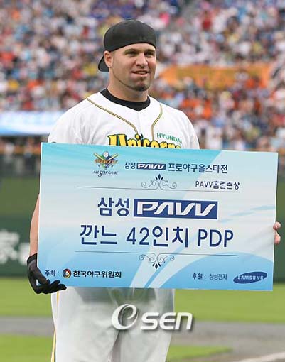 코칭스태프와 구단은 일찍 한국을 떠나도 좋다는 허락을 했다. 비행기 티켓도 10월 2일로 예약했다. 하지만 그는 끝까지 뛰면서 홈런왕을 따내겠다는 각오다. 현대 유니콘스 특급 용병 브룸바(33)의 얘기다. 김시진 감독과 프런트는 올 시즌 성적이 4강권에서 멀어지면서 순위 경쟁이 의미가 없어지자 브룸바에게 남은 경기에 상관없이 조기 출국을 허용했다. 현대 구단은 우천 연기로 인해 시즌 최종 경기를 10월 5일 치르게 된 추가 일정이 나오기 전에 브룸바에게는 10월 2일 출국을 허락했던 것이다. 그러나 브룸바는 단호하게 조기 출국을 거절했다. 아직 한국 무대에서 해야할 일이 남아 있기 때문이었다. 브룸바는 “팀원들과 함께 시즌 마무리를 다하고 홈런왕을 따고 가겠다”며 구단의 배려를 거부한 것이다. 지난 22일 수원 KIA전서 130m짜리 대형 장외홈런을 작렬, 6게임 만에 홈런포를 추가해 시즌 29호를 기록한 브룸바는 “최근 경기가 들쭉날쭉해서 좋은 경기감각 유지가 어렵다. 그래서 최근 홈런을 많이 못쳤다. 몇 게임 안남아 심리적으로도 2위와 간격을 벌이려 욕심을 내면서 잘 맞지 않았다. 주자 없는 상황에서는 의식적으로 홈런을 노리고 있다”고 밝혔다. 롯데 이대호도 이날 28호를 날려 홈런왕 경쟁이 치열한 것에 대해 브룸바는 “이대호든, 심정수든 계속 홈런을 쳐줘야 나도 자극이 된다. 그래야 경쟁이 돼 전체적으로 홈런수가 늘어날 것”이라며 “올해는 홈런왕이 꼭 되겠다”며 결의를 다졌다. 출국도 뒤로 미루고, 국내파와 경쟁을 즐기고 있는 브룸바는 2004년을 되풀이하지 않겠다는 각오다. 브룸바는 2004년 수위타자와 함께 홈런왕을 눈앞에 뒀다가 SK 포수 박경완에게 한 개차로 뒤져 2위에 머문 아픈 기억이 있다. 브룸바가 33개, 박경완이 34개였다. 홈런왕에 강한 의욕을 보이고 있는 브룸바가 막판까지 치열한 경쟁에서 승리할 것인지 지켜볼 만하다. sun@osen.co.kr 지난 7월 올스타전서 홈런상을 받고 있는 브룸바.