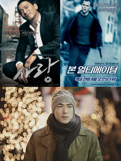 가을은 남자들의 계절이라고 한다. 그래서인지 극장가에서는 남성들을 주인공으로 한 영화들이 각광을 받고 있어 눈길을 끈다. 먼저 ‘마이 파더’ 다니엘 헤니, ‘본 얼티메이텀’ 제이슨 본, ‘사랑’ 주진모 등 남성들이 릴레이 인기몰이로 가을 극장가를 장악하고 있다. ‘마이 파더’가 지난 6일 개봉해 박스오피스 1위를 차지하더니 13일 개봉한 ‘본 얼티메이텀’이 그 뒤를 이었다. 이어 20일 개봉한 ‘사랑’이 근소한 차이로 ‘본 얼티메이텀’을 제치고 박스오피스 1위에 올랐다. 여기에 주요 출연진이 전원 교체된 ‘두사부일체3-상사부일체’(20일 개봉)가 4위에 랭크됐고, 중년 남성들이 뒤늦게 자신의 인생을 즐기게 된다는 내용의 ‘즐거운 인생’이 5위에 자리잡았다. 한편 중견연기자 나문희를 주인공으로 내세운 ‘권순분 여사 납치사건’이 2위, 니콜 키드먼 주연의 ‘인베이젼’이 5위에 랭크됐다. 본격적인 추석 연휴가 시작된 가운데 ‘사랑’과 ‘본 얼티메이텀’, ‘상사부일체’, ‘즐거운 인생’ 등 남성 영화들의 인기는 개봉 영화가 적은 9월 마지막 주까지 당분간 계속될 전망이다. pharos@osen.co.kr