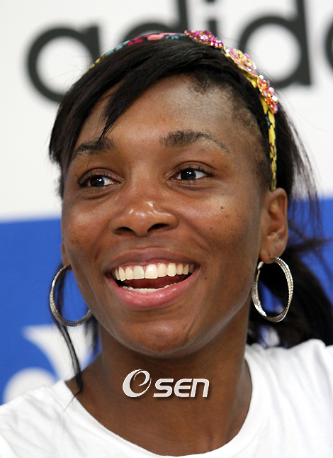 "관중들이 모두 나의 서브를 기다리는 것 같아 기쁘다". 가볍게 1회전을 통과한 세계랭킹 9위의 '흑진주' 비너스 윌리엄스(27, 미국)는 의기양양한 표정으로 인터뷰 룸에 들어섰다. 25일 오후 2시 서울 송파구 올림픽공원 센터 코트에서 진행된 국내 유일의 WTA(여자 프로테니스)투어 2007 한솔 코리아 오픈 단식 1회전에서 아비가일 스피어스를 2-0(6-2, 6-3)으로 꺾은 뒤 가진 기자회견에서 비너스는 "스탠드의 관중들이 모두 내 서브를 기다리는 것 같아 아주 기분이 좋았다"는 소감을 밝혔다. 비너스는 첫 세트에 비해 두번째 세트들어 서브 성공률이 낮아진 것에 대해 "조금 아쉬웠지만 그밖의 플레이 자체에는 만족한다"고 활짝 미소를 지어보였다. 이날 비너스는 성공률이 매우 높은 강서브로 위기를 극복할 수 있는 비결에 대해 묻자 "(서브를 넣을 때) 집중하는 게 비결"이라며 "브레이크 포인트에서 서브를 통해 위기를 이겨낼 때 기분이 아주 좋다"고 말했다. 하지만 비너스는 1회전 상대가 하필 같은 국적의 미국 선수라는 점을 의식, "이 대회에 참가한 미국 선수가 많지 않은데 어떻게 나란히 첫 경기에서 만난건지 모르겠다"며 패배한 스피어스를 위로했다. US오픈이나 윔블던 대회 등 그랜드 슬램과 한솔 대회를 비교해달라는 질문에 비너스는 "큰 대회와 비교해 이런 작은 대회는 여유있고, 또 재미있게 경기를 풀어나갈 수 있다는 게 큰 장점"이라고 나름의 분석을 털어놓았다. 한편 비너스는 자신의 주특기인 강서브가 180km대에 머문 사실에는 비교적 여유있는 반응을 보였다. "언제나 강서브가 필요한 것은 아니다. 오늘은 몸을 많이 풀지 못해 그렇다"고 답한 비너스는 "이제 곧(soon) 내 서브를 기대해도 좋다"며 웃음을 보였다. 오늘까지 한국에서의 생활 나흘째를 맞이한 비너스는 "한국식 맛사지(스파)를 받았는데 말로 표현할 수 없을만치 좋았다"는 소감과 함께 "재래식 시장도 구경했는데 추석이라 대부분 가게가 문을 닫아 물건을 구입하지 못했다. 연휴가 끝나면 곧 찾을 생각"이라고 말해 한국 생활에 비교적 만족하고 있음을 드러냈다. yoshike3@osen.co.kr