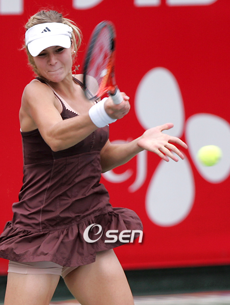 여자프로테니스(WTA) 투어 2007 한솔코리아오픈 준결승 마리아 키릴렌코(러시아)와 엘레니 다닐리두(그리스)의 경기가 29일 올림픽공원 테니스코트에서 열렸다. 키릴렌코가 세트스코어 2-0으로 다닐리두를 제압하고 결승에 진출했다. 키릴렌코가 혼신의 힘을 실어 강력한 포핸드를 구사하고 있다. /올림픽공원=황세준 기자 storkjoon@osen.co.kr