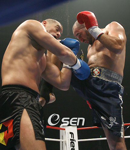 그라우베 페이토자가 난타전 끝에 승리를 거두었다. 29일 서울 올림픽공원 제 1체육관에서 열린 K-1 월드그랑프리 16강전서 페이토자는 할리드 디 파우스트를 맞아 판정승을 거두었다. 1라운드서 주도권을 잡은 것은 페이토자였다. 경험이 많은 페이토자는 양 훅을 앞세워 상대를 압박하기 시작했고 1라운드 중반 파우스트를 링 위에 쓰러트렸다. 2라운드서 파우스트는 경기가 잘 풀리지 않자 양 손으로 자신의 머리를 치며 분발을 다짐하는 모습을 보였다. 하지만 경기는 잘 풀리지 않았고 페이토자가 우세를 보였다. 3라운드서 페이토자와 파우스트는 치열한 공방을 펼치며 난타전을 벌인 끝에 판정까지 갔고 2차례 다운을 뺐은 페이토자가 심판 전원일치 판정승을 거두었다. 경기가 끝난 후 양 선수는 다정하게 포옹을 하며 서로에게 따뜻한 격려를 했다. 승자와 패자 모두 하나가 되는 순간이었다. 10bird@osen.co.kr 페이토자(오른쪽)가 파우스트의 안면에 니킥을 적중시키고 있다./김영민 기자ajyoung@osen.co.kr