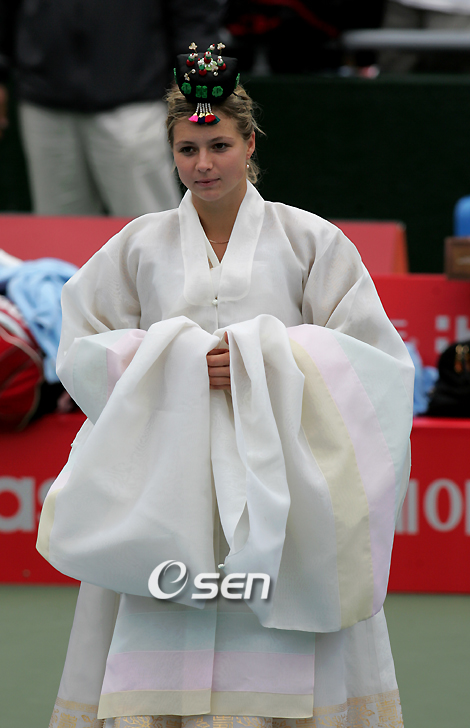 "실수가 많았던 것이 너무 아쉽다". 30일 오후 서울 송파구 방이동 올림픽공원 테니스 코트에서 열린 국내 유일의 WTA(여자프로테니스)투어인 한솔코리아 오픈 결승서 아쉬운 준우승을 차지한 마리아 키릴렌코(25)는 흰색 한복과 함께 오색의 족두리를 쓰고 인터뷰실로 들어왔다. 이날 접전을 펼쳤지만 아쉬운 패배를 당한 키릴렌코는 "1세트서 실수를 많이 했지만 2세트서 잘했다고 생각한다"면서 "3세트 초반 서브게임에서 좋은 경기를 하다 실수가 많아 패하고 말았다. 너무 아쉽다"고 밝혔다. 한복에 대해 키릴렌코는 "굉장히 특별한 옷이다"며 "아직까지 입어본 적이 없다. 인도에서도 전통 의상을 입어봤는데 각 나라의 옷을 입어보는 것은 너무나도 즐거운 일이다"고 전했다. 한국 팬들의 성원에 대해 키릴렌코는 "많은 팬들이 성원해주어 너무 감사하다"면서 "특히 러시아 사람들도 있어 너무나도 반가웠다. 다시 한 번 감사하다는 말을 하고 싶다"고 대답했다. 지난 2005년 베이징 오픈에서 우승한 바 있는 키릴렌코는 "아시아의 분위기가 너무 좋은 것 같다"면서 "최근 톱 텐에 올라있는 선수들을 이기는 등 컨디션이 좋다. 열심히 노력해 더욱 좋은 선수로 거듭나겠다"고 설명했다. 한편 키릴렌코는 메이저 대회 우승을 언제쯤 할 수 있겠냐는 질문에 "가능한 빨리 우승했으면 좋겠다"면서 "최근 페이스가 좋기 때문에 좀 더 노력한다면 좋은 결과 있을 것이라고 생각했다"고 덧붙였다. 10bird@osen.co.kr