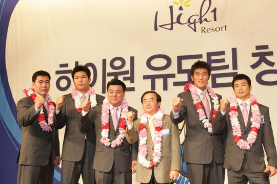 하이원리조트 유도팀이 창단식을 갖고 공식 출범했다. 하이원리조트는 2일 서울 오륜동 올림픽파크텔에서 조기송 대표를 비롯해 김정행 대한유도회장 등 각계 인사 200여 명이 참석한 가운데 창단식을 가졌다. 이번에 창단을 한 하이원유도팀은 지난 88년 서울올림픽 유도 대표팀 코치를 지낸 유송근 하이원리조트 상무가 단장을 맡아 이충석 코치와 동의대 4학년인 73㎏급 구환(22), 90㎏급 김도형(22)과 100㎏급 일본 천리대 졸업반인 심지호(22) 등 3명으로 구성됐다. 조기송 대표는 "하이원리조트는 아이스하키, 스키 등 비인기 종목에 집중적인 투자를 하고 있다"며 "앞으로 일부 인기 종목에 집중된 지원에서 벗어나 범국가적 차원의 스포츠 지원 확대 방안을 강구하겠다"고 밝혔다. 유도팀을 책임지고 있는 유송근 단장은 "단 세 명으로 단촐하게 시작하는 유도팀이기는 하지만 앞으로 유망 선수들의 영입을 통해 강팀으로 거듭날 수 있도록 최선의 노력을 다하겠다"고 전했다. 현재 하이원리조트는 현재 아이스하키팀과 스키팀이 맹활약 중이며, 이번에 하이원유도팀을 창단하면서 비인기 종목의 저변확대와 기업의 사회적 책임을 위해 노력하고 있다. 10bird@osen.co.kr 하이원리조트 제공