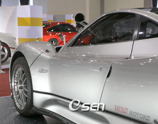 '2007 대전국제드림카페스티벌'이 오는 2일부터 7일까지 대전무역전시관에서 열린다.이번 전시회에서는 슈퍼카인 파가니 존다를 비롯해 벤틀리 콘티넨탈 GT, 람보르기니 무르시엘라고,페라리 F430,포르셰 까레라 GT등 세계 유명 슈퍼카 및 튜닝카, 한 일 대표 레이싱카들의 화려한 향연이 펼쳐진다. 650마력/6200rpm 최고속도 345km 10억원 대에 이르는 파가니 존다가 전시 되고 있다./김영민 기자 ajyoung@osen.co.kr
