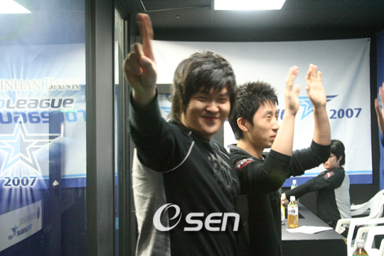 한빛이 오랜만에 시원한 3-0 완승을 거두며 후기리그 첫 승리를 신고했다. 한빛은 2일 서울 용산 e스포츠 상설경기장에서 열린 '신한은행 프로리그 2007' 후기리그 MBC게임전서 에이스 윤용태와 신예 김승현의 데뷔 첫 승, 김인기-신정민 조합의 깔끔한 마무리에 힘입어 3-0 셧아웃으로 승리했다. 후기리그 개막직후 2연패를 처졌던 한빛은 시즌 첫 승을 올린 반면 MBC게임은 1승 3패 득실 -7로 부진에 허덕였다. 한빛은 '강호' MBC게임을 3-0으로 완파하면서 르까프와 개막전 2-3 역전패와 STX전 0-3 완패를 당하며 처졌던 분위기를 반전시킬수 있는 기회를 잡았다. 지난 경기에서 염보성-김택용을 앞세워 승리를 챙겼던 MBC게임은 이번에는 김택용-염보성을 '원투펀치'로 내세웠지만 한빛의 힘은 생각보다 강했다. 한빛의 선봉 '뇌제' 윤용태는 초반 김택용의 맹공에 앞마당이 파괴당할뻔한 위기를 스톰의 달인답게 기막힌 하이템플러 조작으로 김택용의 주력부대를 섬멸시키고, 선취점을 올렸다. 이어 출전한 '신예' 김승현은 리버와 캐리어로 공격과 방어 모두를 완벽하게 하며 '대어' 염보성을 잡아내는 기염을 토했다. 불과 데뷔한지 두달도 채 안된 신인이 염보성이라는 거물을 잡아내자 분위기는 한빛측으로 완벽하게 기울기 시작했다. 윤용태, 김승현 등 프로토스 라인의 활약으로 2-0 으로 앞선 한빛은 3세트서 김인기-신정민 조합이 김재훈-정영철을 완벽하게 제압하며 MBC게임을 3-0으로 완파했다. ◆ 신한은행 프로리그 2007 후기리그 2주차. MBC게임 히어로 0-3 한빛 스타즈. 1세트 김택용(프로토스, 7시) 윤용태(프로토스, 1시). 2세트 염보성(테란, 9시) 김승현(프로토스, 3시) 승. 3세트 김재훈(프, 5시)/ 정영철(저, 1시) 김인기(프, 11시)/ 신정민(저, 7시) 승. scrapper@osen.co.kr