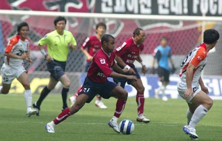 이제 꼭 3경기 남았다. 최하위를 맴돌며 시즌을 마칠 것으로 보였던 대전 시티즌이 막바지 상승세를 타며 6강 플레이오프 진출을 바라볼 수 있는 지점까지 올라섰다. 김호 감독의 부임과 고종수의 부활이 절묘하게 맞물린 결과다. 대전은 최근 2연승을 달리며 승승장구하고 있다. '승리 아니면 패배'라는 전략마저 정확히 맞아떨어져 지역 축구팬들에게 보는 즐거움도 선사하고 있다. 대전은 오는 6일 오후 3시30분 제주 서귀포 월드컵경기장에서 제주 유나이티드와 2007 삼성 하우젠 K리그 24라운드 경기를 치를 예정이다. 지난 시즌 제주에 1승 2패로 열세를 보인 대전은 올해엔 지난 5월 한 번 만나 1-0으로 승리했다. 지난 주말 치러진 전남 드래곤즈와의 23라운드 원정 경기서 대전은 2-1 승리를 거두고 6강 진입의 청신호를 켤 수 있었다. 특히 고종수는 이날 멋진 왼발 슈팅으로 결승골을 뽑아내 2005년 6월 이후 무려 2년 3개월 여 만에 득점을 올리는 즐거움을 맛봤다. 고종수는 전남전에 앞서 대구 FC와 홈경기에서도 날카로운 크로스로 도움 1개를 올려 2경기 연속 공격포인트 기록을 세우기도 했다. 또한 데닐손과 브라질리아도 고종수가 활약을 펼친 대구 및 전남과의 2경기에서 각각 3골-2도움, 1골-2도움을 올려 팀의 연승에 크게 기여했다. 대전은 23라운드까지 마친 현재 7승7무9패, 승점 28점으로 9위에 머물고 있지만 5, 6위를 마크하고 있는 FC 서울과 포항 스틸러스가 나란히 승점 33점이기 때문에 앞으로 남은 3경기 중 2경기를 잡으면 뒤집기도 가능하다고 보고 있다. 오는 10일 홈에서 열리게 될 25라운드 상대가 광주이기 때문에 이번 제주와의 경기를 승리로 이끌 경우 일단 목표한 바는 완성된다. 김호 감독은 최소 2승 1무를 추가한다는 계획을 세우고 있다. 이후 다른 팀 결과를 지켜본다는 생각이다. 올림픽대표팀과 소속팀에서 좋은 기량을 과시하고 있는 오른쪽 풀백 김창수가 경고 누적으로 이번 경기에 나설 수 없지만 대체 멤버들이 충분하고 선수단 사기가 높아 크게 걱정하지 않고 있다. yoshike3@osen.co.kr 지난 5월 27일 대전-제주전=대전 시티즌 제공.