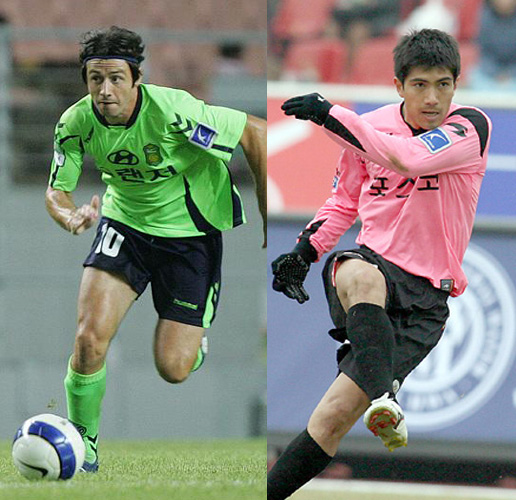 전북 현대와 전남 드래곤즈가 올 시즌 마지막 '호남더비'서 무승부를 기록했다. 7일 전주 월드컵경기장에서 열린 하우젠 K리그 2007 24라운드 경기서 홈 팀 전북은 선취골을 뽑았음에도 불구하고 뒷심 부족으로 동점골을 내주며 1-1 무승부를 기록했다. 이로써 전북은 최근 8경기서 5무 3패로 승리를 거두지 못하며 플레이오프 진출에 빨간불이 켜졌다. 경기 초반 양 팀은 선제골을 뽑기 위해 공격적인 전술로 임했다. 전북은 경기 시작하자마자 전광환이 오른쪽에서 올린 크로스를 제칼로가 강한 슈팅으로 연결했지만 아깝게 득점에 성공하지 못했다. 전북은 수비의 구심점인 최진철과 김영선이 빠졌지만 기동력 있는 축구를 구사하며 앞으로 많이 올라가 플레이하며 경기를 이끌었다. 선제골은 전북의 몫이었다. 전반 13분 전북은 아크 오른쪽에 있던 정종관이 문전으로 달려들던 토니에게 볼을 연결했고 이를 토니가 침착하게 왼발 슈팅으로 전남의 골 네트를 흔들었다. 전남도 이에 뒤질 세라 빠른 역습과 함께 김치우의 중거리 슈팅으로 공격을 시도했다. 특히 전남은 전북의 수비진의 뒷공간을 노리며 후방에서 긴 패스를 통해 경기를 풀어갔다. 후반 들어서도 전북의 공세는 여전했다. 젊은 수비수들이 착실하게 상대의 공격을 막아내며 안정을 취한 전북은 후반 8분 토니의 중거리 슈팅에 이어 코너킥 상황에서도 득점 기회를 잡았지만 아쉽게 추가 득점을 올리지 못했다. 또 후반 17분에는 전남 수비 실책을 틈 타 정경호가 빠른 돌파에 이어 강한 오른발 슈팅을 시도하는 등 전반적으로 쉽게 경기를 이끌었다. 반면 전남은 후반 들어 더욱 힘든 경기를 했다. 몸을 날리는 전북의 수비에 막히며 이렇다 할 찬스를 만들지 못했다. 물론 기회가 없었던 것은 아니었다. 후반 23분 이규로가 문전에서 결정적인 오른발 슈팅을 시도했지만 골대에 맞는 등 운이 따르지 않았다. 그러나 전남의 저력도 만만치 않았다. 후반 33분 전남은 오른쪽에서 올라온 크로스를 상대 수비가 걷어낸 볼을 받은 산드로가 아크 왼쪽에서 침착하게 골문 오른쪽 구석으로 차넣어 동점골을 뽑아냈다. 경기가 원점으로 돌아간 후 전북의 공세는 더했다. 특히 후반 38분 오른쪽에서 올라온 낮은 크로스를 문전으로 달려들던 이현승이 노마크 상태서 슈팅을 시도했지만 아쉽게 골대를 살짝 벗어났다. 결국 양 팀은 추가골을 성공 시키지 못하고 비겼다. 10bird@osen.co.kr 토니-산드로.
