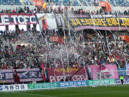 바야흐로 서포터스 총 동원령이 선포됐다. 오는 14일 오후 3시 대전 월드컵경기장에서 펼쳐질 대전 시티즌과 수원 삼성의 올시즌 K리그 최종전을 앞두고 벌써부터 양 서포터스 진영간의 팽팽한 기싸움이 전개되고 있다. 역시 K리그에서 가장 두터운 팬층을 자랑하는 수원답게 적극적으로 원정 응원을 준비하고 있다. 챔피언결정전 직행을 위해서 무조건 이겨야 하는 대전전. 구단에서도 물심양면 각종 편의와 지원을 아끼지 않는다. 현재 인터넷으로 응원 신청을 받고 있는 수원 서포터스 그랑블루는 벌써 신청자가 500여명이 훌쩍 넘었다. 전세버스 12대에 해당하는 인원이다. 그랑블루측은 12일 오후 신청자 마감을 끝내면 약 버스 30대 이상의 대규모 원정대가 대전 경기장을 찾을 것으로 내다봤다. 여기에 개별적으로 이동하는 일부 인원까지 포함하면 실로 엄청난 숫자다. 안방에서 달갑지 않은 손님을 맞게 된 대전 시티즌의 준비도 만만치 않다. 6강 플레이오프 진출을 위해선 일단 이겨놓고 봐야하는 대전인지라 역시 '전쟁 모드'로 돌입했다. 울트라스와 퍼플크루 등 대전 서포터스 조직은 공동 전선을 구축해 역시 홈경기 승리를 위한 총 동원령을 발령했다. 축구 열기만큼은 수원에 못지 않다는 것을 보여주기 위함이다. 각종 통천과 대형걸개, 플랜카드의 제작도 끝마쳤고 수원과의 뜨거운 응원전에 대한 채비를 끝냈다. 그러나 아무래도 걱정스러운 부분도 있다. 올시즌 최다관중을 기대하면서도 대전 사무국은 고집세기로 유명한 양 서포터스가 충돌할까 노심초사다. 경찰 병력이나 경호인력을 늘리는 방안도 조심스레 모색중이다. 황의경 홍보과장은 "특별한 홍보가 없었음에도 티켓 예매 문의가 폭주하는 등 수원전에 대한 관심이 뜨겁다"면서 "올시즌 최다관중이 찾을 것으로 보지만 양 서포터스가 예민한만큼 충돌도 우려된다"고 말했다. yoshike3@osen.co.kr 대전 시티즌 제공.