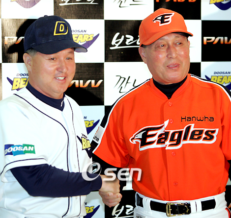 취재진 앞에 나타나는 타이밍부터가 달랐다. 14일 플레이오프 1차전을 앞두고 김경문 두산 감독은 경기 개시(오후 2시) 한참 전부터 잠실구장 1루 덕아웃에 나와 기자들을 응대했다. 선글라스를 끼고 등장했으나 어느 때보다 분위기나 목소리가 밝았다. 김 감독은 생중계 TV가 5회 클리닝타임 도중 인터뷰를 요청한다는 제안에 대해서도 "취지는 이해하지만 현실적으로 쉽지 않은 면도 있다"라고 말했으나 최종적으로 수용 의사를 내비쳤다. 이후 김 감독은 정확히 정오 무렵까지 기자들과 담소를 나누다 "2시간 전이니 들어가 보겠습니다"라며 자리를 떴다. 반면 김인식 한화 감독은 일찍 야구장에 도착했음에도 3루 덕아웃 뒷편 감독실에 들어 앉아 기자들을 피했다. 이후 낮 12시 반이 훨씬 넘어서야 덕아웃에 나타난 김 감독은 기자들을 보며 "세어보자. 50명이 기다린다고 해서 나왔는데"라며 슬쩍 미소를 지었다. 어렵사리 나온 김 감독을 담기 위해 사진기자까지 모여들자 김 감독은 첫 마디부터 "힘들다. 정민철도 안 될 것 같고, 류현진도 2차전까지는 이기고 있을 때 막판 불펜으로 쓸 수 밖에 없다. 내일 선발도 모르겠다"라며 '앓는 소리'를 했다. "실력이 모자라니 정신력으로 하겠다"고 특유의 위트를 날렸지만 표정 어딘가에는 곤혹스러움이 묻어났다. 김 감독은 TV의 중간 인터뷰 요청에 대해서도 "클리닝타임 때 화장실도 가야 하고 코치들에게 지시도 내려야 되는데 시간을 빼앗길 수 있다"는 이유로 거절 의사를 시사했다. 한편 두산-한화의 팬들은 경기 시작 3시간 전부터 잠실구장 매표소 앞에 장사진을 이뤘다. 각각 1루와 3루측에 자리잡은 두산과 한화 응원단은 1시간 전부터 치열한 응원 대결로 플레이오프 1차전의 분위기를 고조시켰다. sgoi@osen.co.kr