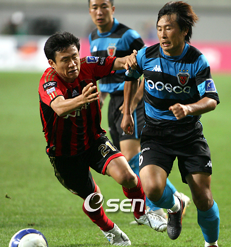 우여곡절끝에 마지막 경기에서 인천을 3-2로 제압하고 6강행 티켓을 거머쥔 포항의 힘은 바로 탄탄한 허리진이었다. 김기동, 황지수, 따바레즈로 이어지는 포항의 허리라인은 팀의 공수를 조율했다. 올 시즌 포항의 공격력은 그리 좋지 않았다. 올 시즌을 앞두고 이동국이 미들스브러로 이적했고 고기구가 상대 수비의 견제와 슬럼프에 허덕이고 있기 때문. 전남에서 영입한 이광재도 기대를 만족시키지 못했고 외국인 선수들도 부진을 면치 못했다. 이런 와중에 최고참인 김기동은 올 시즌 4골로 팀 내 최다 득점을 기록했을 정도다. 그는 철저한 자기 관리로 필드 플레이어 최다 출전 기록을 이어가고 있다. 김기동과 함께 황지수의 공로 또한 무시할 수 없다. 황지수는 포항의 수비형 미드필더로서 상대팀의 플레이메이커를 꽁꽁 묶는 역할을 잘 소화했다. 특히 6강 진출의 분수령인 25라운드 울산전과 26라운드 인천전에서 각각 알미르, 김상록을 잘 마크함으로써 팀의 승리를 도왔다. 올해로 K리그 4년차인 따바레즈는 올 시즌 특급 도우미로서 재부활했다. 그는 올 시즌에만 11도움을 기록했다. 이는 4년간 자신이 기록했던 최다 도움. 이밖에도 고비마다 날카로운 프리킥골을 성공시키며 K리그의 데드볼 스페셜리스트로서 면모를 과시했다. 특히 인천과의 경기에서 따바레즈는 드라간과 칼레의 집중 마크를 피해 좋은 모습으로 팀의 완승을 이끌어냈다. bbadagun@osen.co.kr 김기동(오른쪽).
