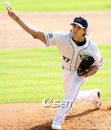 '한화 타선을 영점으로 틀어막다'. 두산 에이스 리오스(35)가 14일 잠실구장에서 열린 2007 프로야구 플레이오프 1차전 한화와의 경기에서 8이닝 동안 6안타, 볼넷 하나를 내줬지만 무실점으로 쾌투, 팀의 8-0 승리를 이끌었다. 1차전 MVP에 선정된 리오스는 경기후 인터뷰서 “초반 직구를 주로 던지며 투구 리듬을 찾았다. 리듬을 찾은 후 여러 가지 구질을 던졌다”고 밝혔다. '주심이 초반 리오스 구위가 좋지 않았다'는 물음에 “심판 생각일 뿐이다”라고 밝힌 리오스는 자신의 피칭에 자신감을 보였다. 이어 리오스는 스트라이크존에 대해서도 “스트라이크가 볼이 되더라도 낮게 던지는 게 목표니 상관없다. 또 높은 볼이 스트라이크가 되더라도 타자는 그것을 놓치지 않고 쳤을 것”이라고 덧붙혔다. 이날 8이닝을 던지는 동안 리오스는 두산 내야진의 철벽 수비 덕을 톡톡히 봤다. 삼진이 불과 1개인 것에서 알수 있듯 리오스는 철저히 맞혀 잡는 투구를 펼쳤고 수비진이 이를 뒷받침했다. 위기 때마다 병살타를 유도해낸 리오스는 경기 후 “수비가 잘해줘서 쉽게 던졌다”고 동료들의 칭찬도 잊지 않았다. 7rhdwn@osen.co.kr