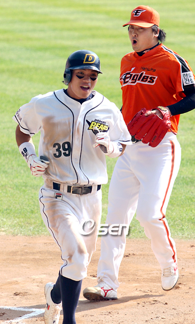 공격력, 마운드, 기동력 그리고 체력까지 모든 면에서 불리한 한화 이글스. “우리에게 내일은 없다”는 김인식 감독 말대로 매 경기 즉흥적인 마운드 운영으로 힘겹게 경기를 끌어 가고 있다. 투수들이 마운드에서 최대한 버텨줘야 하는 상황인데 지난 14일 두산과 플레이오프 1차전서 한화 투수진으로서는 여의치 않았다. 이유는 단 하나, 볼넷이든 몸에 맞는 공이든 출루하려는 두산 타자들 때문이다. 특히 8-0 완패의 가장 큰 요인은 톱타자 이종욱(27)을 출루시킨 점이다. 이종욱은 출루하려는 의지가 타석에서부터 불을 뿜었다. 1회말 이종욱은 홈플레이트에 바짝 붙어 타격했고 결국 한화 선발투수 최영필은 몸쪽에 붙이는 공을 던지지 못하며 볼넷을 허용했다. 이종욱은 2루 도루에 성공, 최영필을 흔들어 놓았고 결국 두산은 폭투로 손쉽게 선취점을 올렸다. 어떻게든 최영필이 3회까지 버텨줬으면 하던 한화 벤치의 바람은 이종욱의 도루 때문에 무너졌다. 초반부터 한화가 끌려간 것은 최영필이 1회부터 투구수가 많았던 탓도 있지만 이종욱이 두산의 사기를 올려놓은 것이 더 컸다. 홍성흔의 “분위기는 8개 구단 중 최고”라는 말대로 한 번 올라간 두산의 사기는 꺾일 줄 몰랐고 내야수들의 호수비까지 나오면서 경기 초반 한화가 쉽게 무너진 원인이 됐다. 선취점이 중요하다고 양 팀 감독이 말했듯 선취점을 주지 않기 위해서는 두산 공격의 시작인 이종욱을 출루시키지 말아야 하는 것은 당연하다. 15일 오후 6시에 벌어질 한화와 두산의 플레이오프 2차전에서 한화는 선발투수로 정민철을 예고한 가운데 선두타자로 나올 이종욱을 1회말 어떻게 처리할지 주목된다. 7rhdwn@osen.co.kr