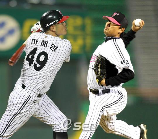 끝내 마해영(37)과 진필중(35)이 LG 유니폼을 벗는다. LG 트윈스는 15일 보도자료를 통해 1루수 마해영, 우완 투수 진필중을 포함해 안재만(33, 내야수), 양현석(30, 외야수), 추승우(28, 내야수), 오승준(25, 투수), 박영주(20, 투수) 등 7명을 오는 11월 25일부터 보류선수 명단에서 제외시킬 계획이라고 밝혔다. 그동안 LG 구단의 계륵이었던 마해영과 진필중은 몸값에 걸맞는 활약을 보여주지 못한 채 LG 구단에서 퇴출됐다. 둘은 한 때 한국야구를 주름잡았던 강타자와 특급 소방수였으나 노쇠화에 따른 기량 저하로 올 시즌 내내 2군에 머물렀다. 마해영은 2004년 삼성에서 FA 자격을 얻은 뒤 KIA 타이거즈와 4년에 최대 28억 원의 FA 계약을 맺었고 2006년 LG로 트레이드됐으나 실력 발휘를 제대로 하지 못했다. 왕년의 거포였던 마해영은 새로 부임한 김재박 감독의 배려로 시즌 초 11경기에 출장했으나 타율 7푼1리로 저조한 성적을 내는데 그쳤다. 2004년 KIA에서 FA 자격을 획득하고 LG와 4년 최대 30억 원에 계약한 진필중도 이후 뚜렷한 활약을 펼치지 못해 ‘먹튀’라는 오명을 얻었다. 왕년의 특급 마무리였던 진필중은 LG 유니폼을 입은 후 첫 해에만 15세이브를 기록했을 뿐 이렇다할 성적이 없다. 올 시즌에는 단 한 번도 1군 마운드에 오르지 못했다. 김재박 감독은 시즌 막판 둘에 대해 방출하겠다는 뜻을 밝혔다. 김 감독은 둘의 기량이 떨어져 방출하는 대신 신예들을 키우는데 힘을 쏟을 작정이다. what@osen.co.kr