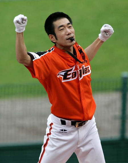 야구장을 찾은 수많은 팬들을 하나로 만드는 마법사. 팬들과 선수들을 이어주는 가교. 열띤 응원을 이끌어 그라운드에서 뛰고 있는 선수들에게 큰 힘을 불어 넣어주는 비타민 같은 존재. 주인공은 바로 응원단장. 한화의 응원단장을 맡고 있는 홍창화(29) 씨는 팬들을 하나로 만들 수 있는 힘을 응원단장 만의 매력이라고 표현했다. 15일 잠실구장에서 벌어지는 두산과의 플레이오프 2차전에 앞서 만난 홍 씨는 "팀이 지고 있다가 응원의 힘으로 경기가 잘 풀려 승리하면 그 보다 기쁜 것이 없다"고 말했다. 지난 2004년 금호생명 여자농구단을 시작으로 관중석의 사령탑을 맡은 홍 씨는 타고난 응원단장. 서울 출신이지만 한화의 매력에 빠져 지난 해부터 인연을 맺고 있다. 대전 시내에 나가면 알아보는 사람이 많을 정도로 지역에서는 유명 인사다. 지난 해 한국시리즈에서 아쉽게 우승을 놓친 것이 가장 아쉬운 점. 올해 만큼은 반드시 정상에 오를 것이라고 자신감을 보였다. 삼성과의 준플레이오프 2차전에서 패했을때도 그다지 걱정하지 않았다. "안방에서 3차전이 열리니까 이길 것이라는 확신이 생기더라"고 강한 믿음이 깔려 있었기 때문. 전날 경기에서 0-8로 패했지만 "오늘은 반드시 설욕할 것"이라고 강조했다. "선발 정민철이 잘 던지고 이범호와 김태균이 한 방을 날려 짜릿한 승리를 거둘 것"이라고 내다봤다. "관중들은 제가 책임지겠습니다. 선수들은 그라운드에서 최선을 다해 뛰어 주세요"라고 말한 홍 씨의 표정에는 비장함이 엿보였다. what@osen.co.kr 한화 이글스 제공.