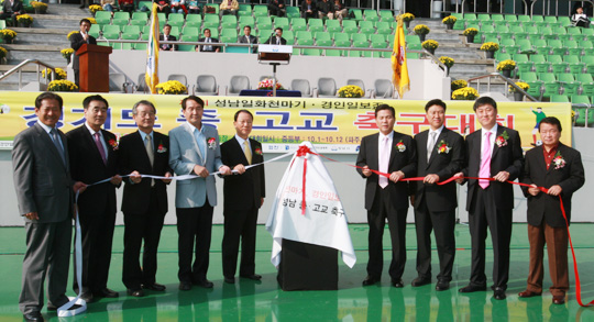 성남 일화와 경인일보가 공동 주최하고 성남시, 파주시 축구협회가 주관하는 ‘제1회 성남 일화 천마기-경인일보배 경기도 중·고교 축구대회’가 16일 성남 탄천종합운동장서 화려한 축포와 함께 개막됐다. 고등부 첫 경기서는 성남의 유스클럽인 풍생고가 2-0으로 수원고를 꺾었다. 성남은 지역 연고를 더욱 정착시키고 지역 꿈나무들을 발굴, 육성하기 위해 적극적인 지원과 끊임없는 관심을 기울여야 한다는 점을 절실하게 느껴 이번 대회를 마련하게 되었다. 오는 24일까지 열리는 이번 대회는 성남시와 용인시의 경기장에서 벌어진다. 한편 지난 1일부터 12일까지 파주에서 열린 중등부서는 부천의 역곡중학교가 초대 패권을 차지했다. 7rhdwn@osen.co.kr 성남 일화 제공.