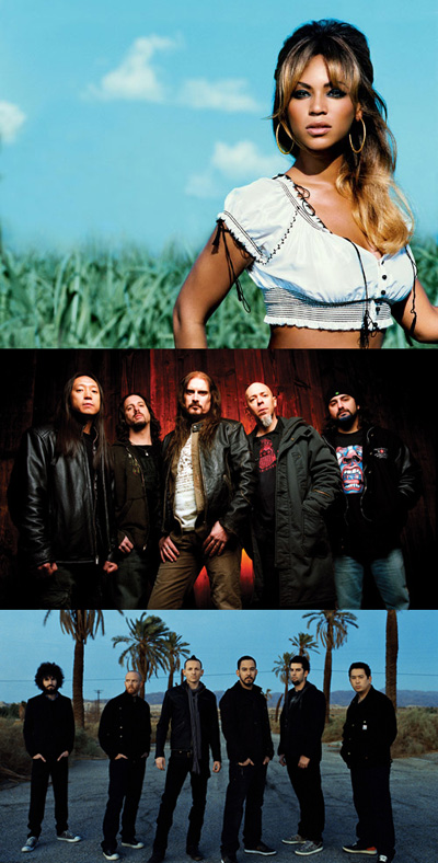 올 가을 이름만 들어도 가슴 뛰는 세계적인 팝가수와 록의 거물들이 줄줄이 내한공연을 갖는다. 국내 공연 예매사이트 인터파크ENT의 10월 둘째주 콘서트 예매 순위 10위권 안에는 해외 뮤지션의 내한공연이 3개나 포함 돼 있다. 영국밴드 스타세일러와 일본 락밴드 엘레가든, 라이즈 등이 참여하는 버드락 콘서트까지 포함하면 4개다. 이외에도 스콜피온스, 드림씨어터, 메가데쓰 등 전설적인 밴葯湧?내한공연이 내정돼 있어 그 어느 때보다 풍성한 내한공연을 즐길 수 있다. 10월 둘째주 콘서트 예매율 1위를 차지한 공연은 폭발적인 가창력, 세련된 무대매너까지 갖춘 비욘세의 내한공연이다. 솔로 이전 여성 힙합그룹 데스티니스 차일드 출신인 비욘세는 10번이나 그래미상을 수상해 음악성과 실력도 인정받았다. 현재까지 성별 예매율 현황은 여성 65%, 남성 35%로 여성들에게 높은 지지를 얻고 있다. 이 공연은 11월 9일과 10일 양일간 서울 올림픽공원 체조경기장에서 열린다. 비욘세와 비교되는 여성 힙합계의 디바 시아라(CIARA)는 10월 19일 서울 올림픽공원 펜싱경기장에서 내한공연을 갖는다. 남자들도 소화하기 힘든 고난이도의 댄스 실력과 개성 넘치는 목소리로 ‘여자 어셔’‘R&B의 알파걸’이라는 애칭을 갖고 있는 시아라는 국내에서는 귀에 익숙한 다수 TV 광고의 배경음악으로 더욱 친숙하다. 시아라의 첫 내한공연 오프닝 게스트로는 국내 인기 힙합 그룹 빅뱅과 미 여성 3인조 그룹 캔디힐이 내정돼 있어 더욱 기대감을 높인다. 또 세계적인 락 밴드의 내한 소식이 많아 락 매니아에게 그 어느 때보다 풍요로운 시즌이다. 4년 만에 다시 내한해 11월 30일 서울 올림픽공원 체조경기장에서 공연하는 린킨파크의 내한공연이 주간 예매율 4위에 올랐다. 지금까지 2000만장이 넘는 앨범 판매고를 기록한 세계적인 인기밴드인 린킨파크는 한국인 멤버 조셉한과 일본인 보컬 등 다국적 멤버들로 구성되어 아시아에서도 큰 인기를 누리고 있다. 이승환, 슈퍼키드, 닥터코어911 등 국내 뮤지션과 해외 뮤지션이 함께 참여하는 버드락 콘서트는 7위에 올랐다. 공연은 11월 17일 서울 올림픽공원내 올림픽홀에서 열린다. 스콜피온스도 2001년 이후 6년 만에 내한한다. 10월 26일 잠실실내체육관에서 공연한다. 40년간 밴드운명을 같이한 클라우스 마이네와 루돌프 쉥커(기타) 두 멤버가 주축이 돼 노장임에도 변치 않는 매력적인 비음의 서정미 넘치는 보컬과 여전히 파워풀한 사운드를 들려준다. 내년 초에는 프로그래시브 록밴드 드림시어터 내한공연도 기다리고 있다. 내년 1월 12일 서울 광장동 멜론 악스홀에서 5번째 한국공연을 갖는 드림시어터는 10월 10일 티켓오픈 하자마자 콘서트 예매율 1위에 올라 충성도 높은 국내 마니아 군단의 애정을 확인시켰다. happy@osen.co.kr