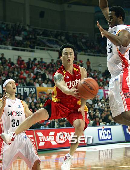 새로운 선장을 맞은 오리온스가 '디펜딩 챔피언' 울산 모비스와 개막전에서 승리를 거두었다. 이충희 신임 감독이 이끄는 오리온스는 18일 울산 동천체육관에서 열린 2007~2008 SK 텔레콤 T 프로농구 개막전서 12개의 어시스트를 기록한 김승현(12득점, 4스틸)과 리온 트리밍행(29득점, 10리바운드), 김병철(23득점, 6어시스트)의 활약에 힘입어 김효범(20득점)이 버틴 홈팀 모비스에 92-83으로 승리를 거두었다. 1쿼터 초반 팽팽했던 경기는 오리온스 가드 김승현의 활약으로 균형이 깨졌다. 오리오스는 1쿼터 3분께 김승현이 모비스 외국인 선수 오웬스의 볼을 가로채 득점에 성공한 뒤 상대의 턴오버 등으로 28-15로 앞선 채 1쿼를 마쳤다. 모비스는 2쿼터 3분께부터 하상윤의 3점슛과 오웬스의 골밑 득점을 묶어 6분께는 32-25로 따라붙으며 추격에 나섰지만 이동준과 리온 트리밍햄이 버틴 오리온스의 골밑 공략에 실패, 오리온스가 45-27로 전반을 마무리했다. 3쿼터 초반 오웬스가 골밑에서 연속 득점을 뽑아내며 55-49로 다시 점수를 좁힌 모비스는 3분께 이병석이 공격자 파울을 범하며 스스로 찬물을 뿌리는가 했다. 하지만 모비스는 오웬스가 골밑에서 버티면서 외곽 찬스를 만들었고 3쿼터 2분께 신종석과 김효범의 연속 3점포에 힘입어 68-65로 턱밑까지 추격했고 종료 직전 터진 함지훈의 골밑슛으로 71-70으로 역전에 성공했다. 이후 엎치락 뒤치락하던 중 균형을 깬 쪽은 오리온스였다. 오리온스는 4쿼터 3분경 트리밍햄이 3점슛을 성공시킨 후 모비스 키나 영이 속공 찬스를 놓치며 79-77로 앞서 나갔다. 오리온스는 이후 함지훈에게 골밑슛을 내주며 다시 80-80으로 동점을 허용했지만 김승현의 귀중한 가로채기에 이어 트리밍햄, 김병철이 연속 득점에 성공하며 점수를 벌렸고 결국 92-83으로 승리를 거두었다. ■ 18일 전적 ▲ 울산 울산 모비스 83 (15-28 22-17 34-25 12-22) 92 대구 오리온스 10bird@osen.co.kr 울산=김영민 기자 ajyoung@osen.co.kr