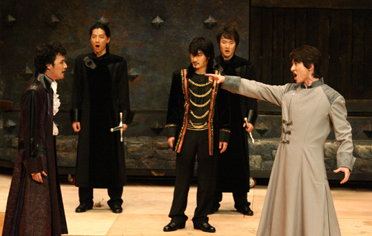 뮤지컬 ‘햄릿’이 12일 개막한 이래 예매 사이트 상위권에 오르며 관객들의 열띤 호응을 얻고 있다. 뮤지컬 ‘햄릿’은 윌리엄 셰익스피어의 명작 ‘햄릿’을 뮤지컬로 각색한 작품. 이번 한국 라이센스 공연은 이전의 프라하와 브로드웨이의 공연보다 더 높은 완성도를 갖췄다. 현악 4중주의 선율, 뛰어난 가창력을 뽐내는 배우들, 탄탄한 연출력과 무대장치로 뮤지컬 팬들의 폭발적인 반응을 얻고 있다. 뮤지컬 평론가인 순천향대 신문방송학과 원종원 교수는 “뮤지컬 ‘햄릿’은 무게 있고 격조 높은 셰익스피어의 원작을 뮤지컬의 특색에 잘 맞추어 구현해 낸 작품으로 눈가에 이슬이 맺힐 만큼 선명하고 강렬한 느낌을 준다”며 “고전이 지닌 예술작품으로서의 진정성과 뮤지컬의 대중적인 특색이 절묘한 조화를 이뤄낸 대표적인 작품으로 꼽을 수 있다”고 평했다. 뮤지컬 ‘햄릿’은 체코 프라하와 브로드웨이에서 공연된 흥행작으로 한국 공연은 11월 11일 까지 유니버설아트센터에서 펼쳐진다. crystal@osen.co.kr 뮤지컬 ‘햄릿’의 한 장면. /PMG 네트웍스 제공.