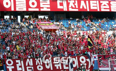 '축구 특별시' 대전 시티즌의 서포터들이 울산벌로 대거 원정에 나선다. 창단 10년 만에 처음으로 6강 플레이오프에 진출한 대전은 오는 21일 오후 3시 울산 문수 월드컵경기장에서 울산 현대와 그 대망의 첫 걸음을 뗀다. 비록 원정 경기로 치러지지만 대전 선수단에겐 이번 대결이 외롭지 않을 전망이다. 무려 1000여 명에 달하는 서포터들이 선수단과 동행을 희망한 것. 20일 황의경 대전 홍보과장은 "지난 15일부터 19일까지 홈페이지 등을 통해 울산 원정에 동행할 팬들을 접수한 결과, 벌써 버스 14대 분량의 인원이 신청을 했고 구단에서는 1대 정도를 추가 배차할 계획"이라고 밝혔다. 또 황 과장은 "당초 코칭스태프와 전 직원이 창원에 내려가 경남 FC와 포항 스틸러스간의 6강 경기를 관전할 계획이었지만 신청자 접수가 폭주하는 관계로 당일까지 대전에 머물러야 할 것 같다"고 덧붙였다. 뿐만 아니라 대전 광역시 차원에서도 이번 원정에 대단한 관심을 보이고 있다. 양홍규 대전시 정무부시장을 필두로 한 대전시 공무원 200여 명은 구단과는 별도로 신청을 접수, 울산 원정에 동행한다. 이들 공무원들 중 상당수는 최근 김호 감독의 리더십 강연을 들은 뒤 감명을 받고, 시를 대표하는 프로축구팀의 경기에 흥미를 보이기 시작한 것으로 알려졌다. 대전 구단의 고위 관계자는 "지난 14일 우리가 수원 삼성을 꺾고 극적으로 6강에 오른 소식을 각종 언론을 통한데다 김호 감독의 진솔한 강연을 듣게 된 공무원들이 축구단 투자와 지원에 적극적인 관심을 보이고 있다"고 즐거워했다. yoshike3@osen.co.kr