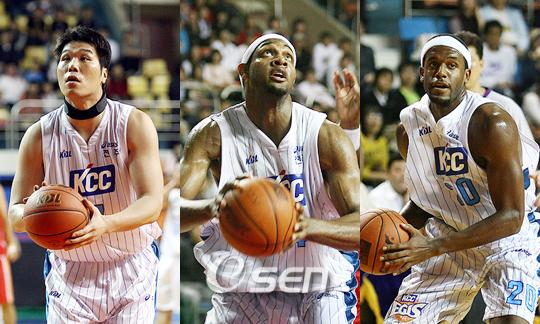 개막전서 아쉬운 패배를 당한 KCC, 트리플 타워 앞세워 승리 거둘 수 있을까?. 21일 안양 실내체육관에서는 2007~2008 SK텔레콤 T 프로농구 안양 KT&G와 전주 KCC의 경기가 열린다. 이날 관심을 모으고 있는 것은 KCC가 '국보급 센터' 서장훈과 함께 브랜튼 크럼프(205cm), 제이슨 로빈슨(193cm)으로 야심차게 구성한 트리플 타워가 위력을 발휘하느냐 여부. 지난 19일 KCC는 동부와 홈 개막전에서 83-74로 패배를 당했다. 이날 패인은 서장훈의 부진. 서장훈은 1쿼터에서 자유투로 2득점을 기록했을 뿐 6번의 야투가 모두 림을 외면했다. 서장훈은 이날 매치업 상대였던 라이벌 김주성에게 완벽하게 밀렸다. 특히 서장훈은 두 번의 블록슛을 당하는 등 스피드는 물론 높이에서도 뒤져 팀의 패배를 막을 수 없었다. 수련선수 출신의 이중원이 3점슛 4개를 포함해 14점을 올리며 막판 대추격전을 벌이긴 했지만 팀의 핵심인 서장훈이 부진, KCC로서는 속수무책이었다. 아직 시즌 초반이긴 하지만 프로농구 10개팀 감독은 올 시즌 우승후보로 KCC를 점쳤다. 서장훈 외에도 205cm의 크럼프가 드래프트 용병 치고는 준수한 능력을 가진 것으로 평가했기 때문에 높은 점수를 얻었다. KCC의 2차전 상대인 KT&G 또한 전날 오리온스에 패한 데다 홈 개막전이라 쉽게 물러나지 않을 것으로 예상되기 때문에 이날 경기가 어떤 양상이 될지 관심이 모아진다. 10bird@osen.co.kr 서장훈-크럼프-로빈슨.