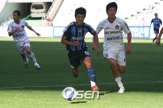 울산이 대전을 누르고 준플레이오프에 진출했다. 울산은 21일 문수 월드컵 경기장에서 열린 대전과의 K리그 6강 플레이오프에서 이상호, 박동혁의 골에 힘입어 대전을 2-0으로 눌렀다. 이로써 대전은 오는 28일 홈에서 포항과 준플레이오프를 치르게 된다. 양 팀은 상반된 모습을 보여주었다. 홈팀 울산은 장신 스트라이커 우성용을 앞세워 전방으로 차주고 헤딩으로 떨구는 모습이었다. 반면 대전은 고종수를 중심으로 패싱 게임을 전개해나갔다. 대전의 고종수는 이날 좋은 모습이었다. 자신의 센스를 바탕으로 팀의 공격을 전개하는 모습은 일품이었다. 여기에 슈바와 브라질리아, 데닐손으로 이어지는 삼바 3인방의 공격력도 좋았다. 경기의 전반적인 흐름은 대전의 것이었다. 그러나 축구는 볼점유율이나 흐름대로만 가는 것이 아니다. 울산은 다소 밀리는 모습을 보이기는 했지만 선제골을 뽑아냈다. 전반 39분 페널티에어리어 오른쪽 코너 부근에서 김영삼이 올린 크로스를 이상호가 헤딩골로 연결한 것이다. 0-1로 뒤진 대전 역시 좋은 찬스를 맞이했다. 전반 종료 직전 고종수가 미들필드 지역 왼쪽에서 올린 날카로운 크로스를 슈바가 헤딩골로 연결한 것. 하지만 부심의 오프사이드 판정으로 인해 골로 인정되지는 못했다. 후반 들어 대전은 공격에 힘을 실었다. 전반 다소 뒤에서 플레이하던 고종수를 일선으로 끌어올렸다. 여기에 나광현, 최근식 등을 투입하며 공격수를 늘렸다. 그러나 막강한 울산의 수비에 막히며 이렇다할 골찬스를 만들어내지 못했다. 오히려 울산에게 역습을 허용하며 추가골을 내주었다. 울산은 후반 24분 코너킥을 우성용이 헤딩패스해주고 이것을 박동혁이 넣으면서 2-0을 만들었다. 이것으로 우성용은 도움을 하나 추가해 40-40 클럽에 가입했다. 이후 대전은 한 골이라도 만회하기 위해 계속 상대를 몰아붙였다. 하지만 골을 기록하지 못하며 시즌 막판 돌풍을 6강에서 마감해야 했다. 한편 이날 경기에서는 원정 응원온 대전의 서포터들이 과격한 행동을 해 눈쌀을 찌푸리게 했다. 대전의 서포터들은 후반 중반 심판 판정에 불만을 품고 깃발과 물병을 투척했다. 여기에 일부 서포터가 경기장에 난입하며 경기를 7분간 중단시켰다. bbadagun@osen.co.kr