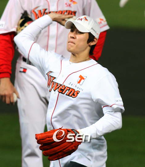 '마린보이' 박태환(18, 경기고)이 한국시리즈 1차전 시구자로 나섰다. 22일 인천 문학구장서 열린 한국시리즈 1차전 SK 와이번스와 두산 베어스 경기 시구를 맡은 박태환은 등번호 1번와 자신의 이름이 새겨져 있는 SK 유니폼을 입고 나와 시구를 했다. 박태환의 시구는 포수 박경완의 키를 훨씬 넘기며 젊음의 힘을 보여주는 시구였다. 이어 박태환은 포수 박경완과 악수한 후 그라운드를 내려갔다. 경기 전 "학교 끝나고 바로 와서 시구 연습을 못했다"고 말한 박태환은 "시구는 지난주 농구장에서 한 데 이어 두 번째"라고 짧은 소감을 밝혔다. 박태환은 2006 도하 아시안게임 자유형 200m, 400m, 1500m서 금메달을 목에 걸며 3관왕을 차지, 대회 최우수선수(MVP)에 선정된 국민적인 스포츠 스타다. 7rhdwn@osen.co.kr