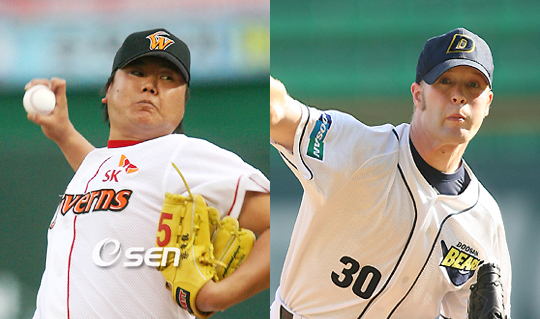 [OSEN=인천, 이상학 객원기자] 이번에는 제2선발 차례다. 토종과 용병의 자존심을 걸고 정면으로 충돌한다. 23일 문학구장에서 열릴 한국시리즈 2차전 선발로 SK가 채병룡(25), 두산이 맷 랜들(30)을 예고했다. 1차전에서 다니엘 리오스를 공략하지 못하며 일격을 당한 SK는 2차전에서 ‘토종 에이스’ 채병룡을 내세워 분위기 반전을 노린다. 1차전 서전을 승리로 장식하며 기세를 올린 두산은 원투펀치의 ‘투’ 랜들을 앞세워 원정 2연승으로 기세를 이어가겠다는 의지다. 채병룡은 올 시즌 28경기에 등판해 11승8패 방어율 2.84를 기록하며 전성기를 누렸다. 생애 첫 두 자릿수 승수를 달성함과 동시에 방어율 부문 전체 2위에 오르는 기염을 토했다. 특히 혹서기를 기점으로 제1선발 케니 레이번이 급격히 흔들릴 때 팀의 에이스 노릇을 해내며 김성근 감독의 두터운 신임을 얻었다. 두산에게도 비교적 강한 면모를 보였다. 올 시즌 두산전에서 4경기에 등판한 채병룡은 2승1패 방어율 2.86으로 좋은 활약을 펼쳤다. 특히 문학구장에서 두산을 상대할 때는 압도적이었다. 5월1일 경기에서는 6⅓이닝 1실점 선발승, 6월15일 경기에서도 6⅓이닝 무실점으로 선발승을 거뒀다. 7월15일 경기에서는 구원 등판해 2⅓이닝을 무실점으로 막았다. 문학구장 두산전 성적은 15이닝 1자책점으로 방어율이 0.60에 불과하다. 채병룡은 올 시즌 문학구장에서 7승1패 방어율 1.61로 무적에 가까웠다. 올 시즌 28경기에 선발등판, 12승8패 방어율 3.12를 기록하며 리오스에 이어 제2선발 역할을 톡톡히 한 랜들은 지난 15일 한화와의 플레이오프 2차전에서도 6이닝 2실점 퀄리티 스타트 피칭으로 선발승을 따낸 바 있다. 이날 경기에서 랜들은 8피안타 3볼넷을 허용했지만 뛰어난 위기관리능력으로 한화 타선을 잠재웠었다. 랜들은 올 시즌 SK를 상대로 3경기에 선발 등판했다. 결과는 1승1패 방어율 4.76. 5월30일 잠실경기에서는 7이닝 2실점으로 선발승을 거뒀지만, 6월17일 문학경기에서 5이닝 2실점으로 평범한 기록을 남겼으며 8월22일 잠실경기에서도 5이닝 5실점으로 선발패했다. 3경기 모두 5이닝을 기본으로 던질 정도로 무난한 편이었지만, 3할에 가까운 피안타율(0.299)에서 나타나듯 SK 타자들을 압도하지는 못했다. 채병룡과 랜들은 한국시리즈 선발등판 경험도 있다. 랜들은 2005년 삼성과의 한국시리즈 2차전에서 선발등판해 6이닝 5피안타 2볼넷 1실점으로 호투했지만 승패와는 무관했다. 채병룡은 2003년 현대와의 한국시리즈에서 2경기에 등판, 6차전에서 선발승을 거두는 등 방어율 1.23으로 호투한 전력이 있다. 한국시리즈가 처음이 아닌 만큼 두 투수 모두 관록의 피칭이 기대된다.