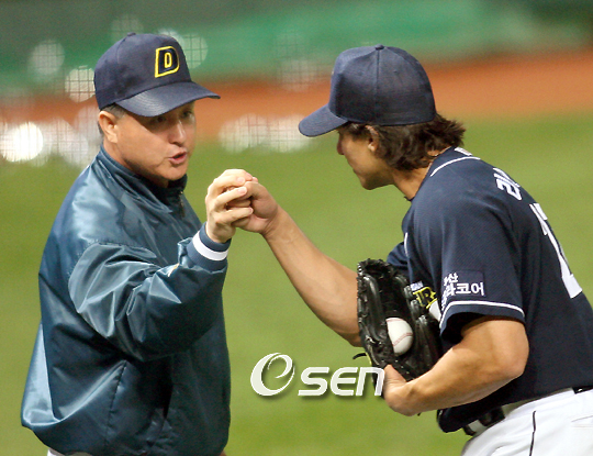 "한국시리즈 첫 승을 하게 돼 기쁘네요". 김경문 두산 감독은 22일 문학구장 만원관중(3만 400명) 앞에서 열린 SK와의 한국시리즈 1차전을 승리로 이끈 뒤, 약간 상기된 얼굴이었다. 표정과 어조는 평상시와 다를 바 없었으나 "한국시리즈 첫 승을 하게 돼 기쁘다"는 소감으로 말문을 열었다. 이 승리로 김 감독은 지난 2005년 한국시리즈 당시 삼성에 4연패로 물러났던 아픔이 적잖이 아물었을 것이다. 또한 두산 역시 한국시리즈 진출 6번째 도전 만에 1차전 승리의 경사를 누렸다. -1차전 승리 소감은. ▲한국시리즈 첫 승을 하게 돼 기쁘다. 잔루가 많았는데 선수들이 오늘 밤 자면서 생각 좀 할 것이다. 리오스가 큰 경기에서 에이스답게 던져줘 어웨이에서 귀중한 1승을 할 수 있었다. -2차전 선발은. ▲랜들 밖에 없지 않나(웃음). 우리팀 제2선발이니까 난조 없다고 믿고 5회까지 어지간하면 둘 것이다. 투구수가 되면 6회 이상까지도 갈 것이다. 그러나 오늘 (리오스의 완봉으로) 불펜이 쉬었으니까 내일 풀 가동해서 총력전을 펼칠 것이다. -선수들에게 도루 사인은 냈나. ▲내지 않았다. 알아서 뛰고 있다. 내가 봐도 (선수들의 기량이) 는 것 같다. -오재원을 이대수 대신 유격수로 기용했는데. ▲방망이는 기대 안 했고, 수비만 잘 해달라는 의도로 기용했는데 에러 없었으니 성공한 것 아닌가. 내일까지는 재원이가 뛸 것 같다. 이대수는 3차전(25일)까지는 좋아지지 않을까 생각한다. 3차전엔 괜찮다고 판단하면 이대수를 기용하겠다. sgoi@osen.co.kr