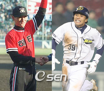 마치 14년 전의 이종범을 보는 듯했다. 지난 22일 문학구장에서 열렸던 2007 한국시리즈 1차전을 본 야구팬들이라면 두산 톱타자 이종욱(27)의 화려한 주루플레이를 보면서 예전 누구와 비슷하다는 느낌이 들었을 것이다. 바로 '발야구 시리즈'로 유명했던 지난 93년 삼성과 한국시리즈에서 당시 해태의 우승을 이끌고 MVP를 따낸 이종범(37)이다. 당시 건국대를 졸업하고 입단한 이종범은 정규시즌서 타율 2할8푼, 73도루를 작성했다. 신인왕은 양준혁에게 내줬지만 한국시리즈에서 최다인 도루 7개를 기록, 신인 최초로 한국시리즈 MVP에 올랐다. 1승1무2패로 몰리던 상황에서 김응룡 감독은 이종범의 발을 최대한 이용, 거함 삼성을 무너뜨렸다. 당시 이종범은 5차전부터 바람처럼 그라운드를 누볐다. 1-0으로 앞선 3회말 좌전안타로 출루하자 연거푸 2루와 3루를 훔쳤다. 그리고 홍현우의 2루수 뒤 짧은 플라이 때 곧바로 홈에 대시, 신기에 가까운 득점을 성공시켰다. 이 득점이 사실상 승부를 갈랐다고 해도 과언이 아니었다. 이종범의 발은 마지막 7차전도 화려하게 수놓았다. 1회말 중전안타로 출루하자마자 2루 도루를 성공시켰고 좌전안타로 홈을 밟았다. 3회말에서도 우전안타로 나가자 2루 도루에 성공했고 후속타로 추가 득점을 올렸다. 2승1무1패로 첫 한국시리즈 우승 희망에 들떠 있었던 삼성은 잠실구장에서 이종범의 발에 신경쓰느라 내리 3연패를 당해 무릎을 꿇었다. 그로부터 14년 만에 한국시리즈서 비슷한 발의 신화가 다시 쓰여질 조짐이다. 두산 이종욱은 22일 1차전에서 이종범의 신기에 가까운 발 플레이를 재현했다. 1회초 좌전안타로 출루한 뒤 고영민의 우중간 2루타로 가볍게 홈을 밟은 이종욱은 3회 실책으로 출루한 뒤 도루에 성공, 특유의 발야구를 보여주기 시작했다. 압권은 1-0으로 앞선 5회초. 1사후 중전안타로 출루, 2루 도루에 성공했고 폭투로 3루까지 진출했다. 연속볼넷으로 만들어진 1사만루에서 김동주의 2루 베이스를 살짝 넘어가는 2루수 짧은 플라이 때 번개처럼 홈을 파고 들어 득점을 올렸다. 이종범이 93년 5차전에서 보여준 발야구를 그대로 재현한 것이다. 이종욱은 앞으로도 두산 최고의 키플레이어로 꼽힌다. 93년 이종범의 발의 위력은 5차전부터 발현됐고 이종욱은 1차전부터 위력을 발휘했다. 당시 삼성이나 올해 SK는 이종범과 이종욱에 대해 철저한 준비를 하고서도 막지 못했다. 그러나 이종욱이 발의 신화를 완성하게 될지는 아직 모른다. 우승과 함께 MVP까지 멀고 먼 산을 넘어야 된다. 겨우 1차전이 끝난 상황에서 향후 SK의 되치기에 당할 수도 있다. 표적으로 떠오른 이종욱은 보다 집요하고 철저한 견제에 무너질 수도 있다. 이종욱이 또 한번의 발의 신화를 엮을 수 있을지는 좀 더 지켜봐야 한다. sunny@osen.co.kr 이종범-이종욱.