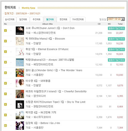 슈퍼주니어의 정규 2집 앨범 ‘돈 돈!(Don’t Don)’이 월간 음반판매차트 1위에 올랐다. 지난 9월 20일 발매된 슈퍼주니어 2집 ‘돈 돈!(Don’t Don)’은 한국음반산업협회에서 발표한 9월 음반판매량 1위에 오른 데 이어, 음반 판매 집계사이트 한터차트에서도 월간차트(9월 24일~10월 21일) 1위에 등극했다. 또한 2집 타이틀곡 ‘돈 돈!(Don’t Don)’ 역시 지난 21일 SBS ‘인기가요’의 뮤티즌송을 차지하는 등 많은 사랑을 받고 있다. 슈퍼주니어 멤버들은 “뜨거운 관심과 성원을 보내주시는 팬 여러분께 정말 감사 드린다. 더욱 멋진 무대로 보답하도록 열심히 노력하겠다”고 소감을 밝혔다. 한편 슈퍼주니어는 25일 Mnet '엠카운트다운'을 비롯해 27일 MBC ‘음악중심’, 28일 SBS ‘인기가요’ 등 음악 프로그램에 출연해 2집 앨범 타이틀곡 ‘돈 돈!(Don’t Don’)’의 화려한 무대를 선사할 예정이다. hellow0827@osen.co.kr