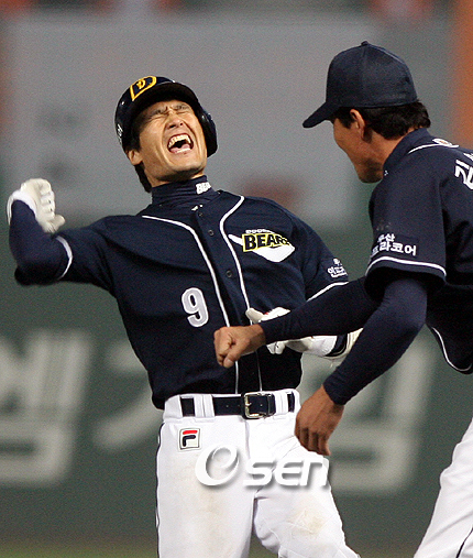 정상이 보인다. 두산 베어스가 적지에서 2연승, 올 포스트시즌 파죽의 5연승으로 정상을 향해 줄달음질쳤다. 두산은 23일 인천 문학구장에서 열린 2007 삼성 PAVV 프로야구 SK와의 한국시리즈 2차전에서 ‘부상 투혼’을 발휘한 이대수의 공수 맹활약에 힘입어 접전 끝에 6-3의 짜릿한 역전승을 거뒀다. 이로써 두산은 원정경기서 2연승을 거두며 한국시리즈 정상 정복에 2승만을 남겨놓게 됐다. 7전4선승의 역대 한국시리즈에서 첫 두 게임을 잡은 팀은 모두 우승의 축배를 들었다. 반면 정규시즌 1위팀 SK는 안방에서 맥없이 2연패, 위기에 몰렸다. 3차전은 두산의 홈인 잠실구장으로 옮겨 25일 오후 6시 열린다. 이날 두산 승리의 히어로는 부상 투혼을 발휘한 유격수 이대수였다. 한화와의 플레이오프 3차전서 다리를 다쳐 전날 1차전을 결장했던 이대수는 정상이 아닌 상태에서도 2차전에 선발 유격수로 출장, 몸을 사리지 않는 수비와 6회 결승타로 친정팀 SK를 울리는데 앞장섰다. 이대수는 한국시리즈 2차전 MVP로 선정돼 상금 100만원을 챙겼다. 홈런 공방전으로 팽팽하던 이날 경기는 6회초 두산 공격서 승부가 결정났다. 3회 동점 투런포를 날린 선두타자 고영민이 좌전안타로 출루한 뒤 다음타자 김동주가 몸에 맞는 볼로 나가면서 무사 1, 2루의 찬스를 잡았다. 김동주가 공에 맞은 후 양팀 선수단이 그라운드에 몰려나와 몸싸움 직전까지 가는 험악한 분위기를 연출돼 경기가 일시 중단됐다. 속개된 경기서 두산 5번타자 홍성흔은 볼카운트 2-0에서 과감하게 스리 번트를 성공시켜 1사 2, 3루의 찬스를 만들었다. 다음타자 최준석이 삼진으로 물러나 계속된 2사 2, 3루에서 이대수가 2타점짜리 중전 적시타를 날렸다. SK 중견수 김강민이 앞으로 전력질주로 달려와 다이빙 캐치를 시도했으나 못미쳤다. 시즌 초반 트레이드로 SK에서 두산 유니폼으로 갈아 입은 이대수로서는 친정팀 SK에 비수를 꽂은 한 방이었다. 계속된 2사 1루에서 5회 솔로 홈런를 날린 채상병이 좌익수 키를 넘어가는 적시 2루타로 한 점을 추가했다. 두산은 6회에만 3점을 뽑아 6-3으로 앞서며 승기를 잡았다. 이대수의 공수 맹활약 외에도 고영민은 투런 홈런 포함 3안타 2타점, 채상병이 솔로 홈런 포함 2안타 2타점 등으로 팀공격을 이끌며 승리에 기여했다. 이날은 경기 초반부터 양팀의 방망이가 불을 뿜었다. 먼저 공격의 불씨를 당긴 것은 전날 침묵했던 SK 타선이었다. SK는 1회말 공격서 이진영이 볼넷을 골라 만든 2사 1루에서 4번타자 이호준은 초구 스트라이크를 놓친 뒤 두산 선발 랜들의 2구 바깥쪽 직구(136km)를 그대로 밀어쳐 우측 펜스를 가볍게 넘겼다. 선제 투런 홈런. 두산의 반격도 매서웠다. 0-2로 뒤진 3회초 공격서 2사후 김현수가 중전안타로 나간 뒤 3번 고영민이 볼카운트 1-1에서 SK 선발 채병룡의 140km짜리 바깥쪽 높은 직구를 끌어당겨 좌측 담장을 넘기는 동점 투런 홈런을 터트렸다. 이후에도 양팀은 홈런포를 주고받으며 공방전을 전개했다. 5회초 두산 포수 채상병이 좌월 솔로 홈런으로 역전에 성공하자 SK는 돌아선 말공격서 좌타자 조동화가 우월 솔로 홈런포로 응수, 3-3 동점을 만들며 접전을 이어갔다. SK는 6회초 3실점한 뒤 돌아선 말공격서 무사 1, 2루의 찬스를 잡았으나 두산 구원투수 임태훈의 호투에 막혀 점수를 뽑아내지 못했다. SK는 2회와 4회 선두타자가 출루하며 추가점을 낼 기회를 맞고도 후속타 불발로 도망갈 수 있는 찬스를 놓쳐 패배의 쓴맛을 봐야했다. 리오스와 함께 두산 마운드의 쌍두마차인 랜들은 5이닝 5피안타 3볼넷 3탈삼진 3실점으로 평범했으나 팀타선의 지원으로 승리 투수가 됐다. 6회말 무사 1, 2루 위기에서 구원등판한 신인 임태훈은 4이닝 무실점으로 완벽하게 틀어막고 데뷔 첫 한국시리즈 세이브를 따내는 기염을 토했다. 역대 최연소 세이브(19세 25일). 반면 SK 우완 선발 채병룡은 5⅔이닝 7피안타 4탈삼진 6실점으로 패전의 멍에를 썼다. 한편 두산 1루수 안경현은 2회 첫 타석서 채병룡의 투구에 맞아 오른 엄지가 골절돼 남은 경기에 출장이 어렵게 됐다. 이날 관중은 2만4099명으로 포스트시즌 및 한국시리즈 연속 매진 행진이 5경기서 중단됐다. sun@osen.co.kr 3-3으로 맞선 두산의 6회초 2사 2,3루에서 이대수가 2타점짜리 중전 적시타를 날리고 1루에서 환호 하고 있다./인천=김영민 기자ajyoung@osen.co.kr