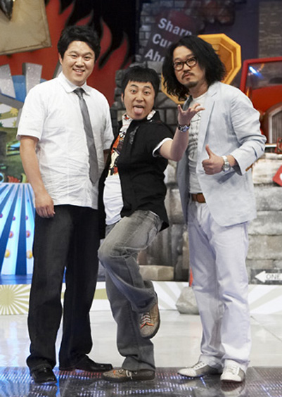 독설가로 명성이 자자한 방송인 김구라(37)가 전에 없던 부드러운 모습으로 주위 사람들을 의아하게 만들었다. 김구라는 최근 KBS2 TV '해피투게더-그건 너' 녹화에서 유재석의 질문과 박명수의 태클에도 친절한 미소를 띤 얼굴로 화답했다. 아니나다를까. 이유가 있었다. 바로 김구라가 어쩔 수 없는 사정으로 녹화에 무려 3시간이나 늦었던 것. 밤이 깊은 시간, 이전 코너인 ‘암기송’ 녹화에 이미 지친 스태프와 MC들은 극도의 체력저하에 시달리며 김구라를 기다렸다. 이에 김구라는 연신 사과를 하며 녹화 내내 평소에 절대로 볼 수 없었던 부드러운 태도로 일관해 도리어 다른 출연진을 어리둥절하게 만들었다는 소식이다. 한편 ‘이 기회를 놓칠 수 없다’고 생각한 MC 유재석은 김구라에게 게스트 이윤석이 히트시킨 '허리케인블루'를 함께 재연할 것을 요청했고 이에 김구라는 울며 겨자 먹기로 ‘SHE'S GONE’을 열창, 녹화장을 웃음바다로 만들었다. 어디서도 절대 볼 수 없었던 김구라의 순하디 순한 모습은 25일 '해피투게더 시즌3-그건 너'에서 전파를 탄다. yu@osen.co.kr 케이블 채널 XTM의 ‘도와주십 Show’에서 우승민 지상렬과 진행을 맡고 있는 김구라(맨 왼쪽).