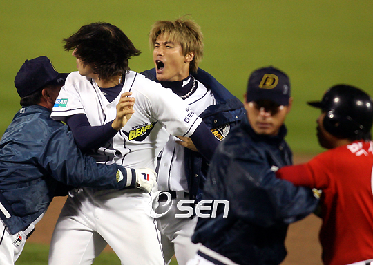 "리오스를 보호해야 했다". 지난 25일 한국시리즈 3차전에서 결국 두산과 SK는 곪았던 감정의 앙금을 터뜨렸다. SK가 9-0으로 앞서던 6회초 두산 좌투수 이혜천의 무릎 쪽으로 날아오는 공을 빈볼이라 판단한 SK 베테랑 타자 김재현이 마운드로 튀어나가며 필드는 6분여 간 난장판이 됐다. 양 팀의 선수와 코치들이 쏟아져나와 몸싸움까지 벌어진 가운데 유독 '돋보이는' 선수가 한 명 있었다. 두산의 주장이자 분위기 메이커인 홍성흔이었다. 홍성흔은 두산 선수단 중 김동주와 함께 가장 격앙된 반응을 보이던 에이스 리오스를 필사적으로 말려 싸움터에서 떨어지게 만들어놨다. 리오스는 아수라장으로 뛰어들어 SK 선수단과 주먹으로 승부를 내겠다는 제스처를 그치지 않았으나 홍성흔의 제지 덕분에 그나마 사태는 최악의 상황으로 치닫지는 않았다. 김동주 역시 두산 김민호 코치의 만류 덕분에 '대형사고'를 면할 수 있었다. 그러나 장원진이나 정원석, 랜들 등 두산의 고참급 선수들이 앞장 서서 전선을 확대한 데 비해 홍성흔만이 '평화유지군'으로서 사태를 진정시키는 데 주력했다. 3차전 직후 홍성흔은 "(리오스가) 충돌해선 안 되는 상황이었다. '내일의 경기(4차전)를 생각하라'고 말하며 말렸다. 리오스는 계속 '놓으라'고 했지만 그럴 수 없었다"라고 밝혔다. 홍성흔이 '평화유지군'으로 뛴 또 하나 이유는 실리에만 있진 않았다. 그는 "팬들이 프로야구를 지저분하다고 여기실까봐 걱정이다. 양 팀이 우승에 목말라 있다보니 이런 상황이 자주 발생하는데 먼저 두산만이라도 깨끗한 플레이를 하도록 주장으로서 선수들에게 주문해야겠다"라고 말했다. sgoi@osen.co.kr