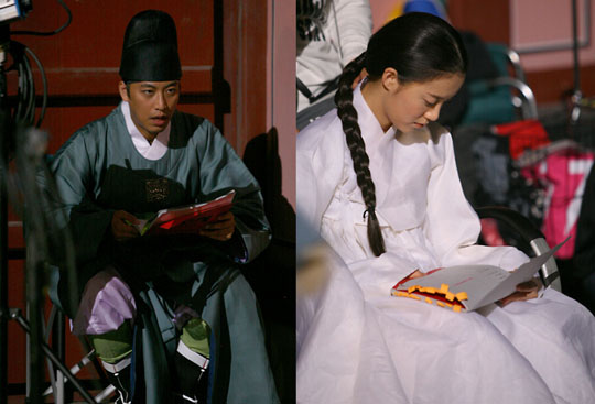 오만석(32) 구혜선(23)의 대본 보는 모습이 드라마 홈페이지에 공개 돼 눈길을 모으고 있다. SBS 월화사극 ‘왕과 나’(유동윤 극본, 김재형 손재성 연출)에서 각각 처선 소화로 분해 열연을 펼치고 있는 오만석과 구혜선은 쉬는 시간에도, 분장을 하면서도 손에서 대본을 놓지 않는 모습이다. 지난 8월 27일 첫 방송을 시작한 ‘왕과 나’에서 9월 18일, 8회 방송분부터 등장한 오만석과 구혜선, 고주원 등은 현재 경기도 SBS 일산제작센터를 비롯해 수원행궁과 최근 수원영화문화관광지구내 오픈한 세트장, 경희궁, 용인세트장 등지를 오가며 바쁘게 촬영에 임하고 있다. 처선 역의 오만석의 경우에는 드라마 촬영이 대본의 순서대로 진행되지 않은 것을 고려해 대본상 앞 장면과 뒷 장면까지 모두 정독해 감정을 잡아 가는 스타일이다. 소화 역의 구혜선은 대본에다 포스트잇과 형광펜을 최대한 활용해 집중적으로 대본을 보는 스타일이다. 두 배우는 대본을 볼 때는 어느 때 어느 장소건 가리지 않고 앉을 만한 장소만 마련된다면 무조건 대본을 펼치고 자기 차례가 올 때까지 대본만 들여다본다. 최근 둘은 눈물 연기가 많았는데 어떻게 해서든 인공눈물이 아닌 자기 눈물로 극을 소화하기 위해 노력을 아끼지 않고 있다. 이 사진이 홈페이지를 통해 공개되자 많은 네티즌들은 “배우 분들의 이런 모습이 있어 날마다 ‘왕과 나’가 기다려지는가 보다”“오만석은 너무 대본을 열심히 봐서 대본이 손에 붙은 건 아닐까 싶다”“너무 힘들텐데 건강관리 잘 하기를...” 같은 댓글을 남기며 격려를 아끼지 않고 있다. 한편 29일 ‘왕과 나’ 에서는 그동안 착한 중전으로 사랑받았던 공혜왕후가 최후를 맡는 장면과 더불어 성종에게 친정(親政)을 해야 한다는 공신들의 의견들이 모아지는 장면, 그리고 처선에게 정치를 배우라는 조치겸(전광렬 분)의 조언 장면 등이 공개된다. happy@osen.co.kr