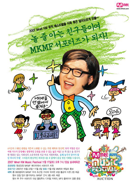'스타의 숨소리와 땀방울이 손에 잡힐 듯 생생하게 펼쳐진다.' 한 해 국내 가요계를 총 결산하는 대중 음악 축제인 '2007 Mnet KM 뮤직 페스티벌(이하 2007 MKMF)'이 11월 17일 잠실 실내체육관에서 그 화려한 막을 올리는 가운데 1800명의 대규모 서포터스를 공개 모집할 예정이어서 눈길을 끈다. 지난 1999년 시작, 올해로 9회째를 맞는 MKMF는 해마다 독창적이고 트렌디한 콘셉트의 무대를 선보여왔으며 서포터스 또한 매년 특색 있는 방법으로 운영해왔다. 지난해는 채널 Mnet의 ‘재용이의 순결한 19세’로 한창 인기 몰이 중이었던 DJ DOC 정재용이 서포터스 단장으로 나서 적극적인 활동을 하는 한편 ‘서포터스 커뮤니티’를 개설해 행사 전 서포터스가 갖춰야 하는 에티켓과 행사에 대한 사전 지식 등을 공유하기도 했었다. 올해에는 가수, MC 등 여러 방면에서 종횡무진 활약 중인 만능 엔터테이너 슈퍼주니어의 멤버 신동이 2007 MKMF 서포터스 메인 모델로 나서 서포터스 간의 친밀감 도모와 교류를 활발히 하는데 주도적 역할을 할 예정이다. 서포터스는 대중 음악을 좋아하고 뮤직 페스티벌을 즐기고자 하는 사람이면 누구나 응모 가능하며 2007 MKMF 공식 홈페이지인 엠넷닷컴 (www.mnet.com) MKMF 페이지에서 본인 사진과 함께 응모하면 된다. 응모 기간은 10월 22일부터 11월 4일까지이며 결과는 11월 6일 문자 메시지와 메일을 통해 발표된다. 선정된 서포터스에게는 친구와 함께 최고의 스타를 초근접거리에서 볼 수 있는 위치의 좌석 티켓 2장과 행사 당일 간식 3종 세트를 제공할 예정이며 행사 후 우수 서포터스에게는 디지털 카메라와 MP3 플레이어를 경품으로 증정할 계획이다. yu@osen.co.kr