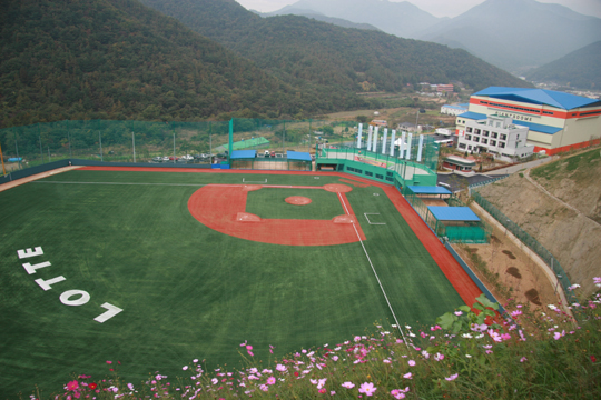 지난 30일 준공식을 가진 롯데의 김해 상동구장. 사방을 둘러봐도 산 밖에 보이지 않는다. 슈퍼마켓에 가려면 20분 이상 걸어야 한다. 뒷산에 살쾡이가 서식할 정도로 인적이 드문 곳이라는 것이 구단 관계자들의 귀띔. 그만큼 선수들이 훈련에 전념할 수 있는 최적의 조건이다. 1982년 창단 이후 전용연습구장이 없었던 롯데는 상동구장 개장을 계기로 '가을에도 야구하자'는 팬들의 간절한 소망을 이뤄줄 각오. 하영철 대표이사는 준공식 기념사를 통해 "상동구장 개장은 롯데 야구단 역사의 큰 의미가 담겨 있다"며 "7년간 포스트시즌 탈락의 한을 풀어줄 시발점이 될 것"이라고 기대를 감추지 않았다. 이어 하 대표는 "코칭스태프와 선수들이 좋은 시설을 어떻게 활용하느냐에 따라 성적이 좌우될 것"이라고 덧붙였다. 주장 손민한(32)도 "올해도 죄송하다는 말 밖에 할 수 없었다. 지금까지 선수들과 팬들이 느낀 아픔과 고통을 가슴 깊이 새기고 죄송하다는 말 대신 성적으로 보답하겠다"고 다짐했다. 롯데는 젊고 가능성 있는 선수들을 상동구장 내 선수단 숙소(거인관)에서 생활하도록 할 예정이다. 고교 시절 손꼽히는 유망주들이 롯데 유니폼을 입었으나 기대 만큼 성장하지 못했다. 일각에서는 어린 선수들에게 유혹의 손길이 많아 성장이 더디다는 지적도 적지 않다. 도심과 떨어진 곳에서 선수들을 제대로 키워보겠다는 복안. 체계적인 선수 관리를 위해 4억 원을 투자해 최첨단 체력단련기구와 의료시설도 구비했다. 좋은 책상에서 공부한다고 무조건 성적이 오르는 것은 아니지만 분명한 건 제대로 해보자는 롯데의 강한 의지가 담겨 있다는 것이다. 롯데가 상동구장 개장을 전환점 삼아 내년 시즌에는 '가을에도 야구하자'는 팬들의 간절한 소망을 이뤄줄 것인지 지켜볼 일이다. what@osen.co.kr 롯데 자이언츠 제공.